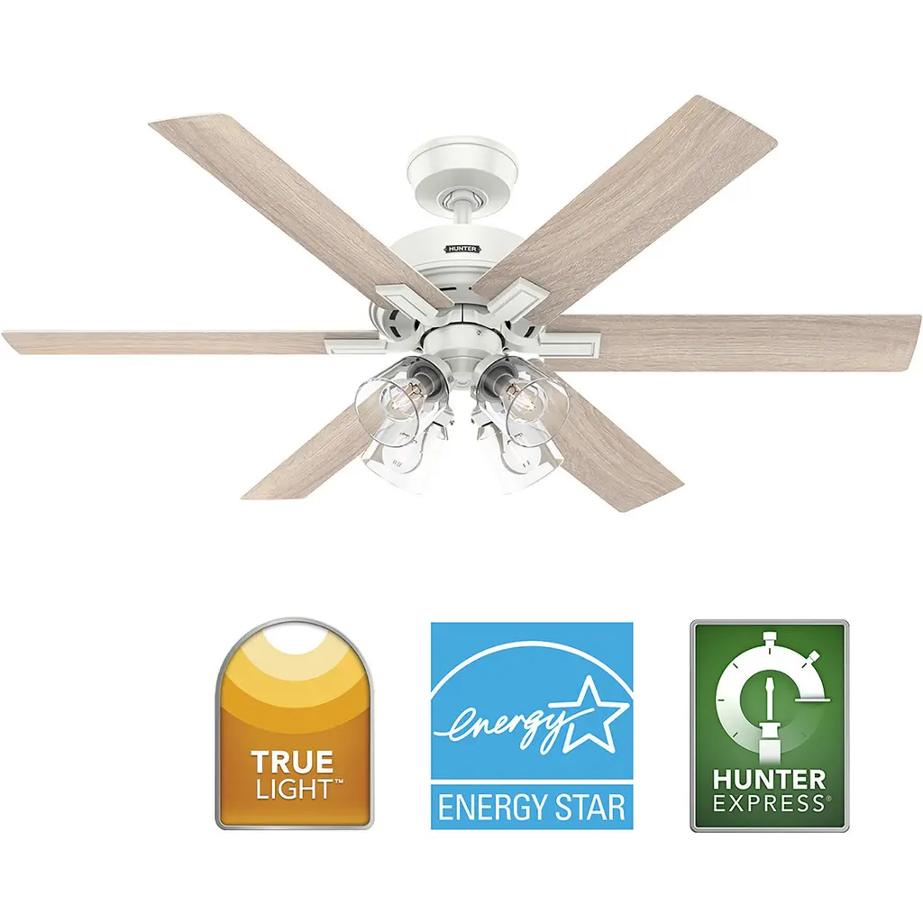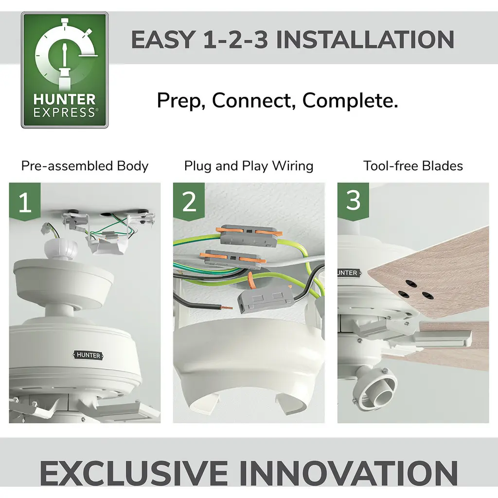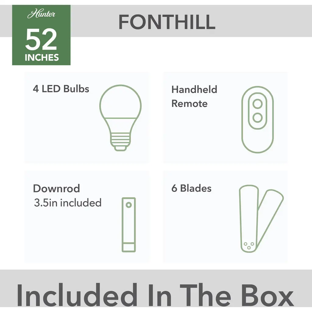 Climb the hill of ultimate comfort with the Fonthill ENERGY STAR Ceiling Fan, perfect for any room with its casual design. Featuring a reversible, 6-speed DC motor, it ensures efficient, quiet operation. Control speed and lighting with ease using the included handheld remote. TrueLight technology ensures a bright balance of clear and welcoming light in every room. The Fonthill fan is 64% more efficient than conventional fans, saving on cooling costs. Ideal for bedrooms and living rooms this energy-efficient fan enhances style and comfort. Plus, HunterExpress fans offer easy 1-2-3 installation with a pre-assembled body, plug & play wiring, and easy-install blades.