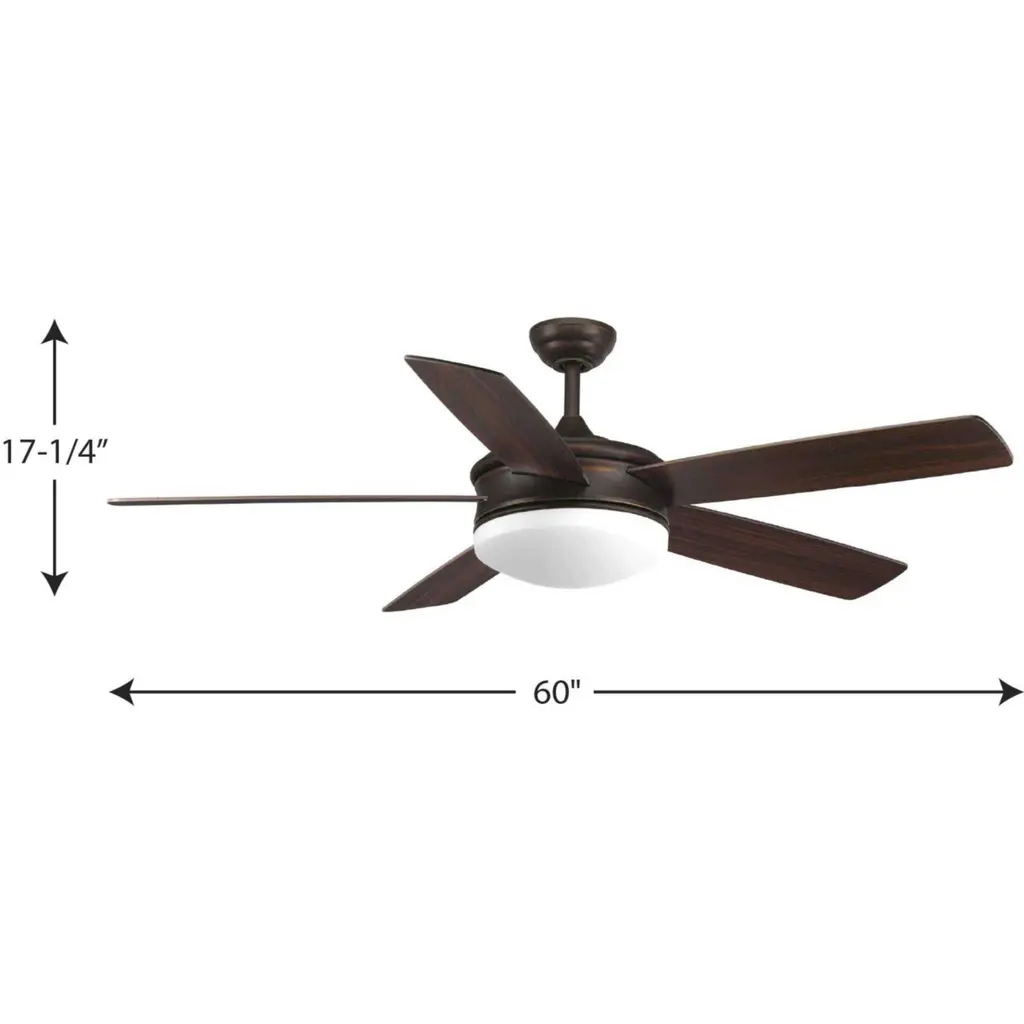 Fresno 60 Inch Antique Bronze With Dark Walnut/cherry Blades Ceiling Fan, Progress Led