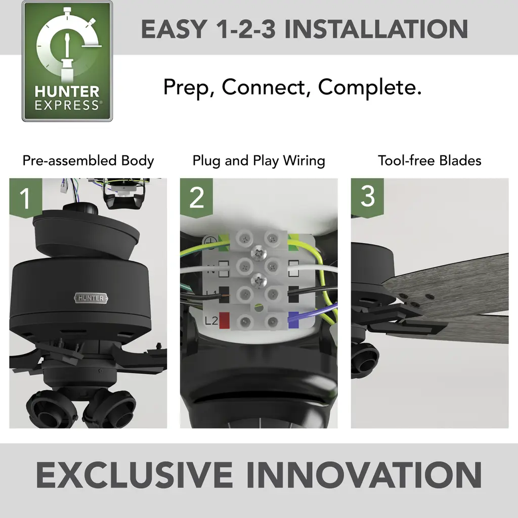 A graceful spin on tradition, the Gatlinburg ceiling fan is both casual and transitional in style. The simplistic design matches the soothing look of the multiple finish while seamlessly blending into a variety of decors. Updating your room is a breeze with our HunterExpress™ fans, making installation as easy as 1-2-3. Great in a bedroom or office it's the perfect match for almost any space. Mix and match with modern lighting from our lighting collections. We have everything you need to finish your rooms with style.
