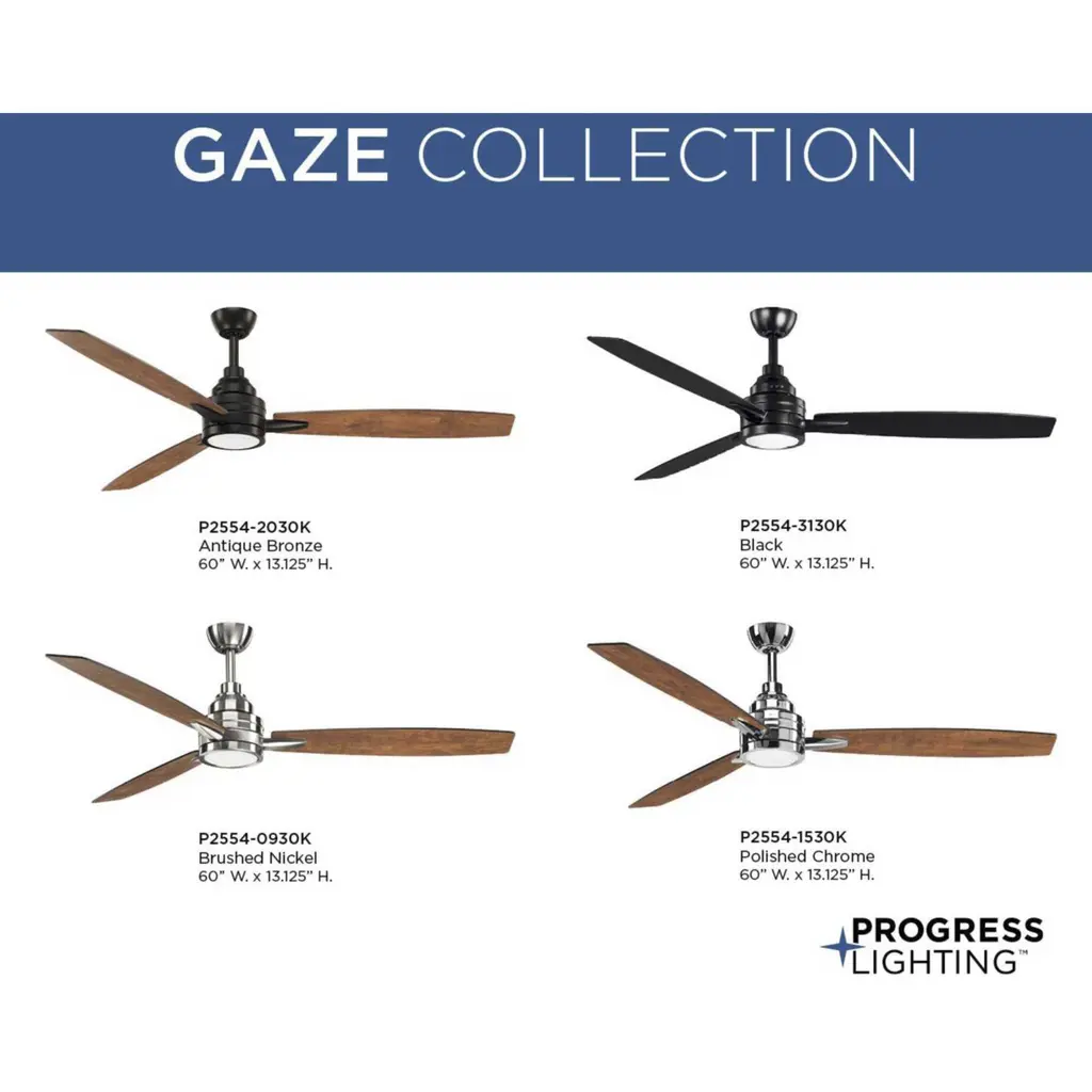 Gaze 60 Inch Black With Distressed Ebony/matte Black Blades Ceiling Fan, Progress Led