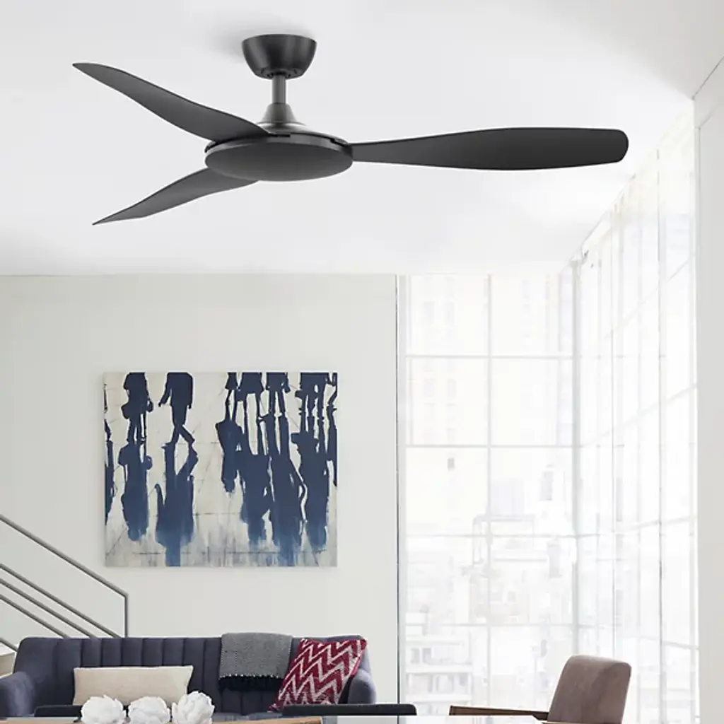 Clean, crisp, and gliding through the air in a surging gust. Complement your modern living rooms with the sleek design of the GlideAire Ceiling Fan from Fanimation Fans. Its profile is as sharp as can be, emphasized by a metal housing that tapers elegantly towards the top. Three blades surround the construction, their shapes long and soft-edged. The fan delivers a staggering amount of airflow per minute, making sure rooms stay as cool and comfortable as can be. An included remote control makes toggling to your preferred setting quick and simple.