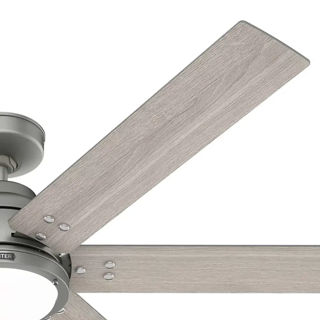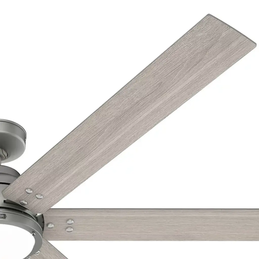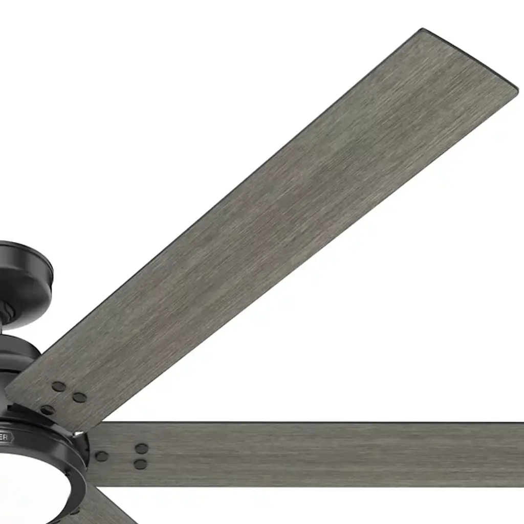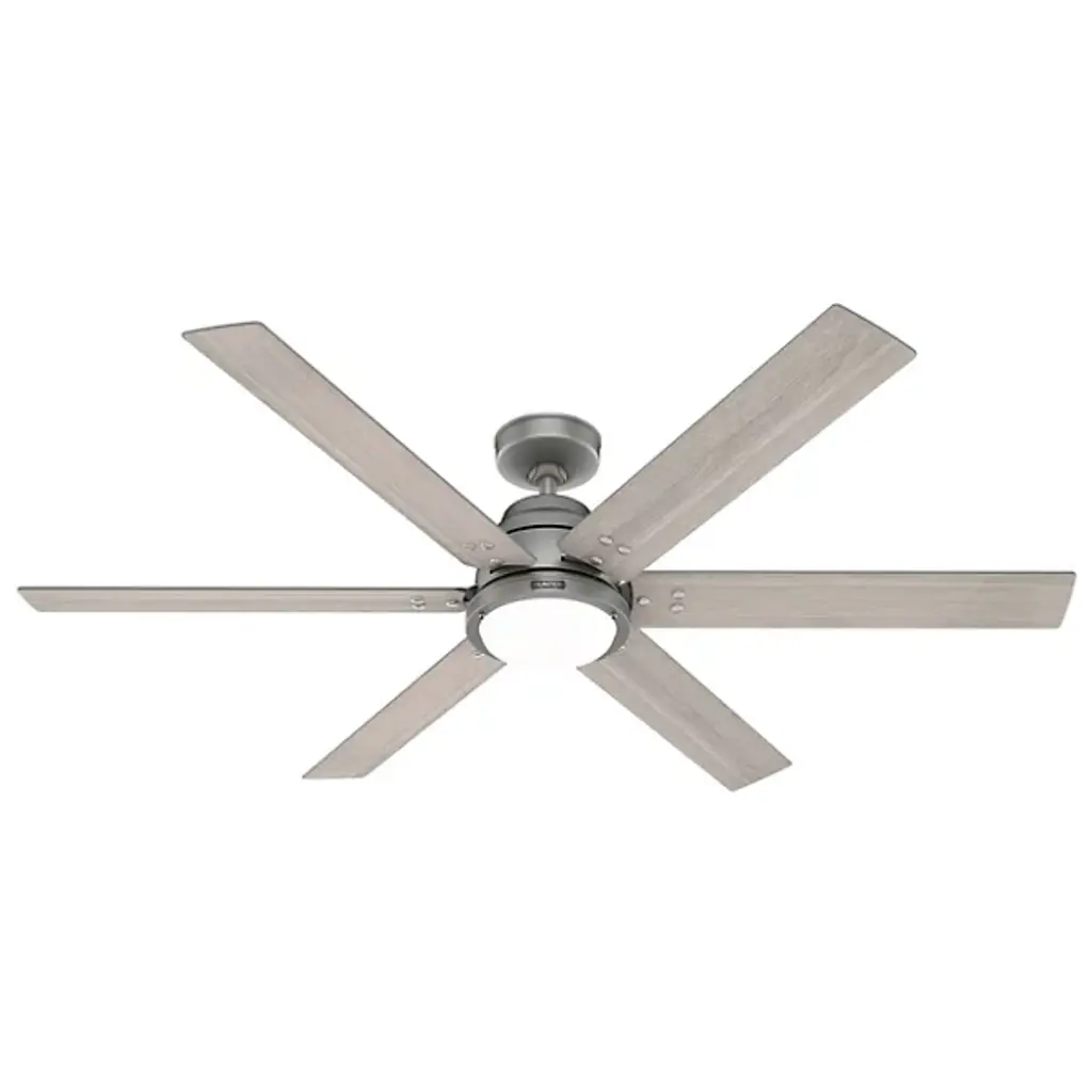 The Gravity WiFi LED Ceiling Fan from Hunter Fans creates a relaxed vibe through its powerful performance and streamlined silhouette. The design's minimal quality lends it to a range of home styles. It packs a reversible 6-speed DC motor that operates quietly. The radiating blades angle slightly with sharp shapes designed to move refreshing air efficiently. The piece's diverse functionality is accessed via the included control or WiFi. One can pair the fan with the smartphone app or a range of voice assistants.
