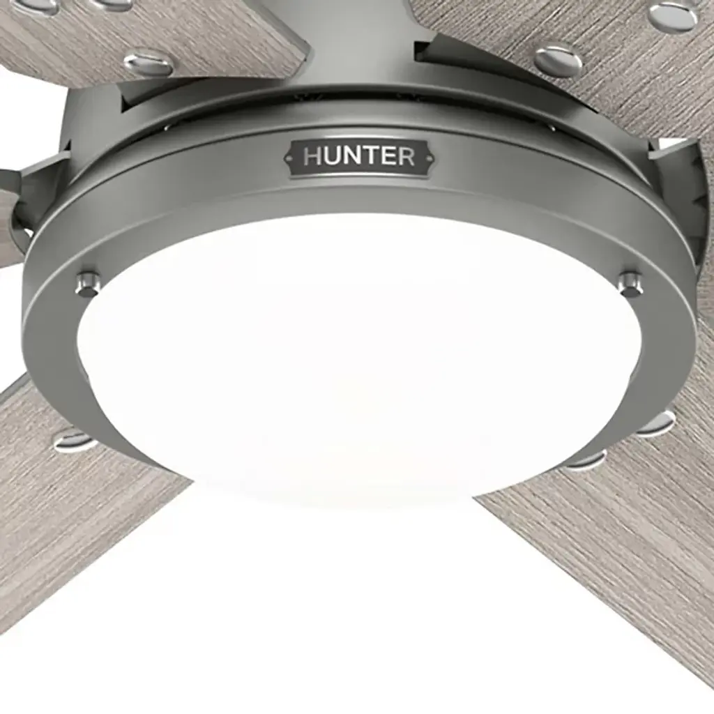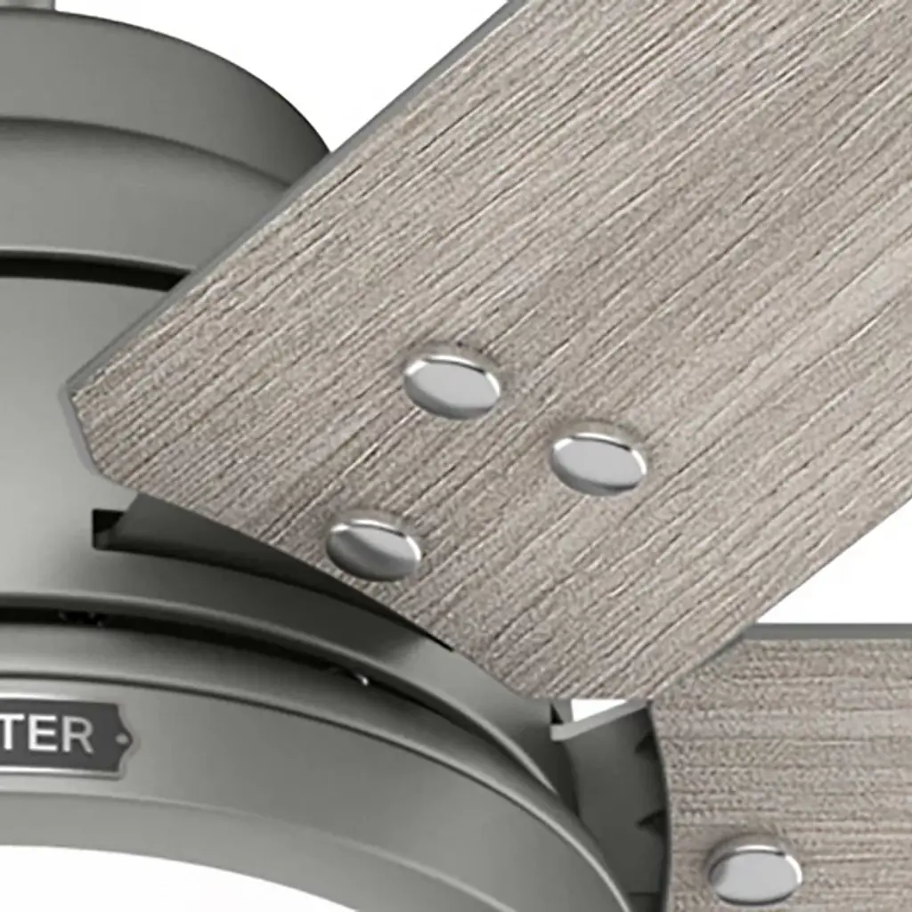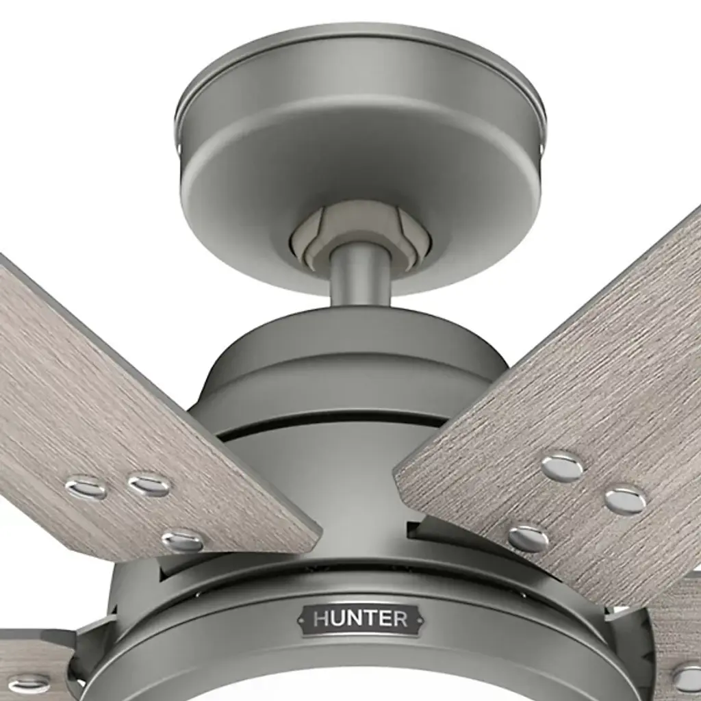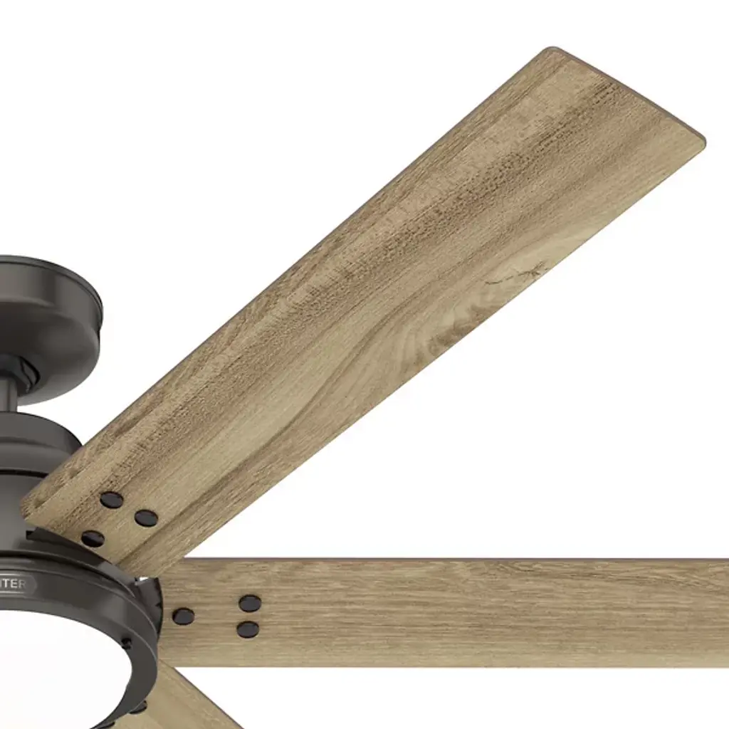 The Gravity WiFi LED Ceiling Fan from Hunter Fans creates a relaxed vibe through its powerful performance and streamlined silhouette. The design's minimal quality lends it to a range of home styles. It packs a reversible 6-speed DC motor that operates quietly. The radiating blades angle slightly with sharp shapes designed to move refreshing air efficiently. The piece's diverse functionality is accessed via the included control or WiFi. One can pair the fan with the smartphone app or a range of voice assistants.