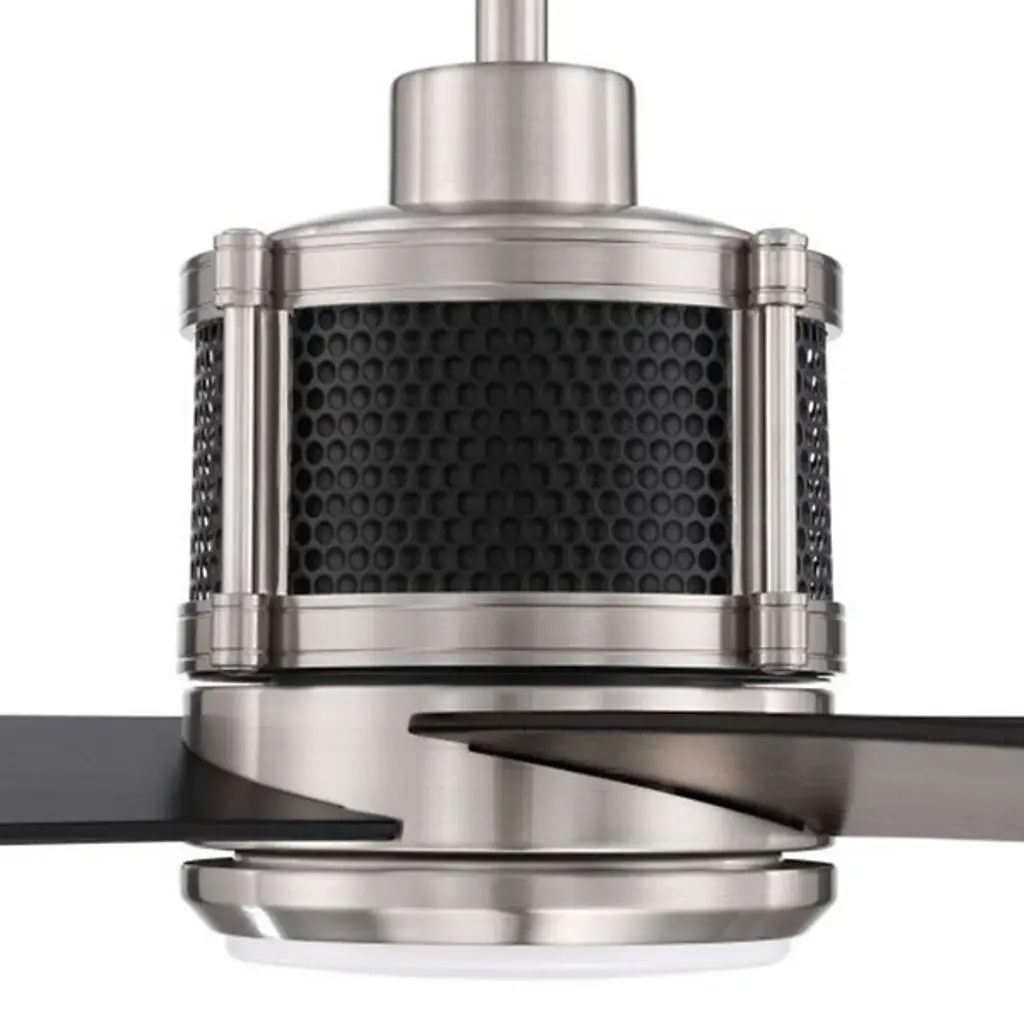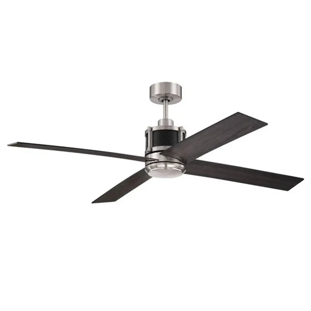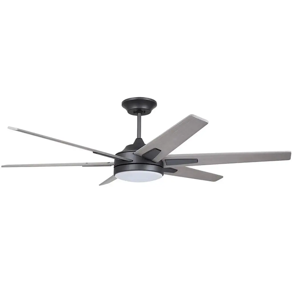 The Gregory LED Smart Ceiling Fan from Craftmade Fans lights up your living space while keeping you cool. Its refined glass shade is illuminated by an integrated LED for enhanced visibility. This sloped-ceiling adaptable fan is composed of silicon, steel, plywood, copper, and aluminum, showcasing its durability and resilience. Its 4 reversible fan blades are powered by a DC motor that allows the fan to operate at 6 speeds. A handheld control is included for your convenience.