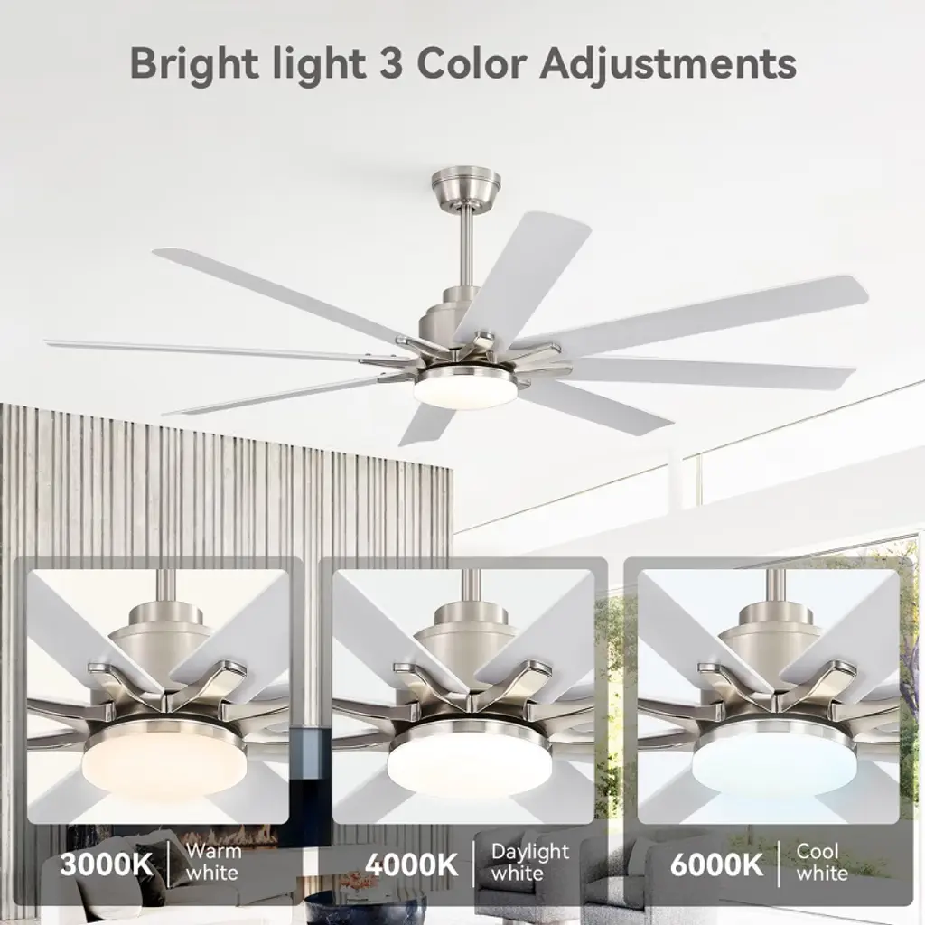 52-Inch Smart Ceiling Fan With Lights 6 Wind Speed With 8 Black ABS Blades Voice Remote Fan For Bedroom etc