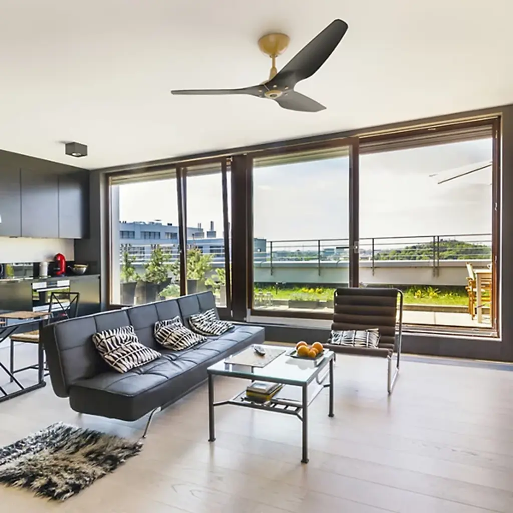 Presented by Big Ass Fans, experience the epitome of control and craftsmanship with the Haiku Gold Ceiling Fan. Designed with convenience and aesthetic harmony in mind, this fan comes with a premium Bluetooth remote and wall mount, allowing you to effortlessly adjust the fan's speed, change lighting options, and engage Timer or Whoosh modes—all at your fingertips.