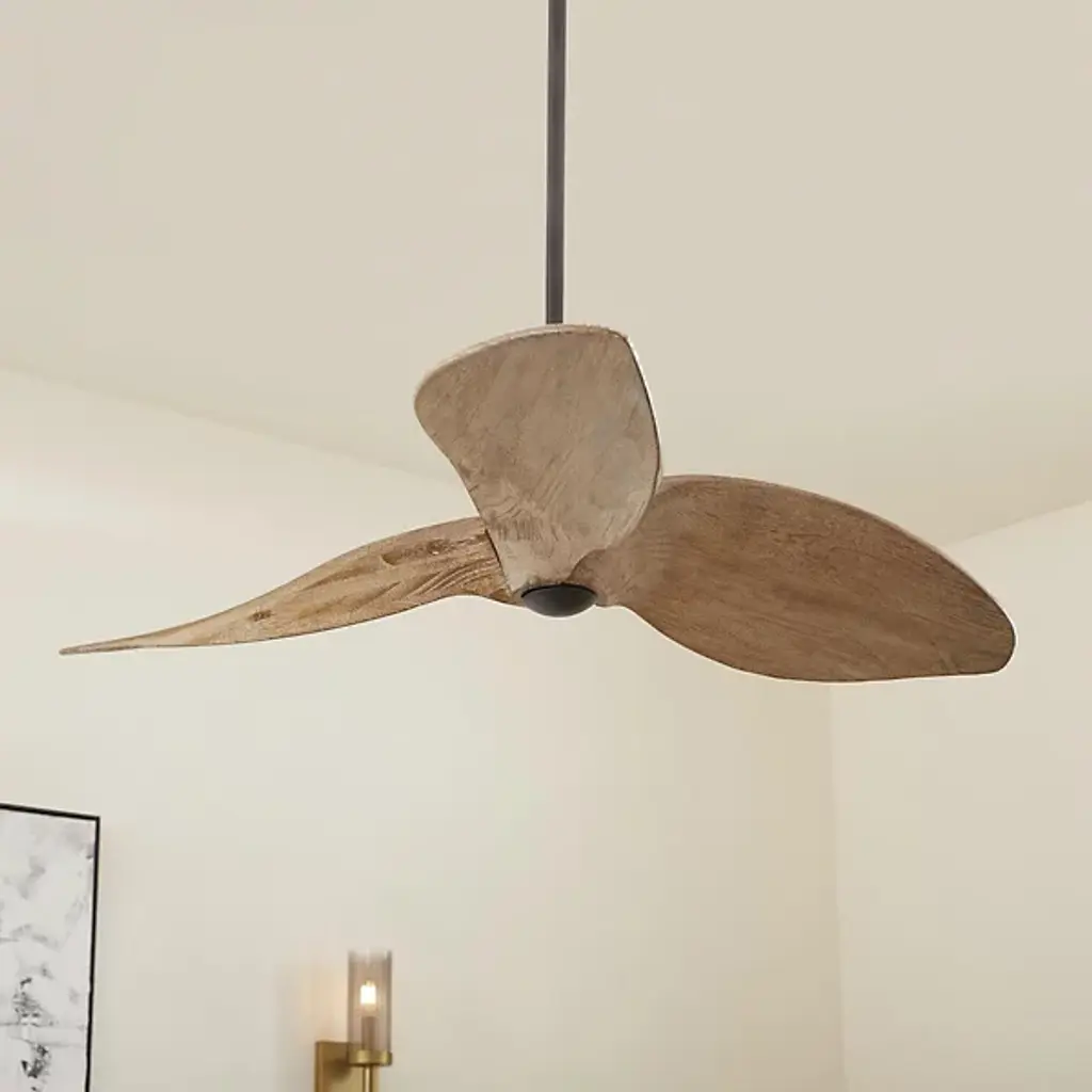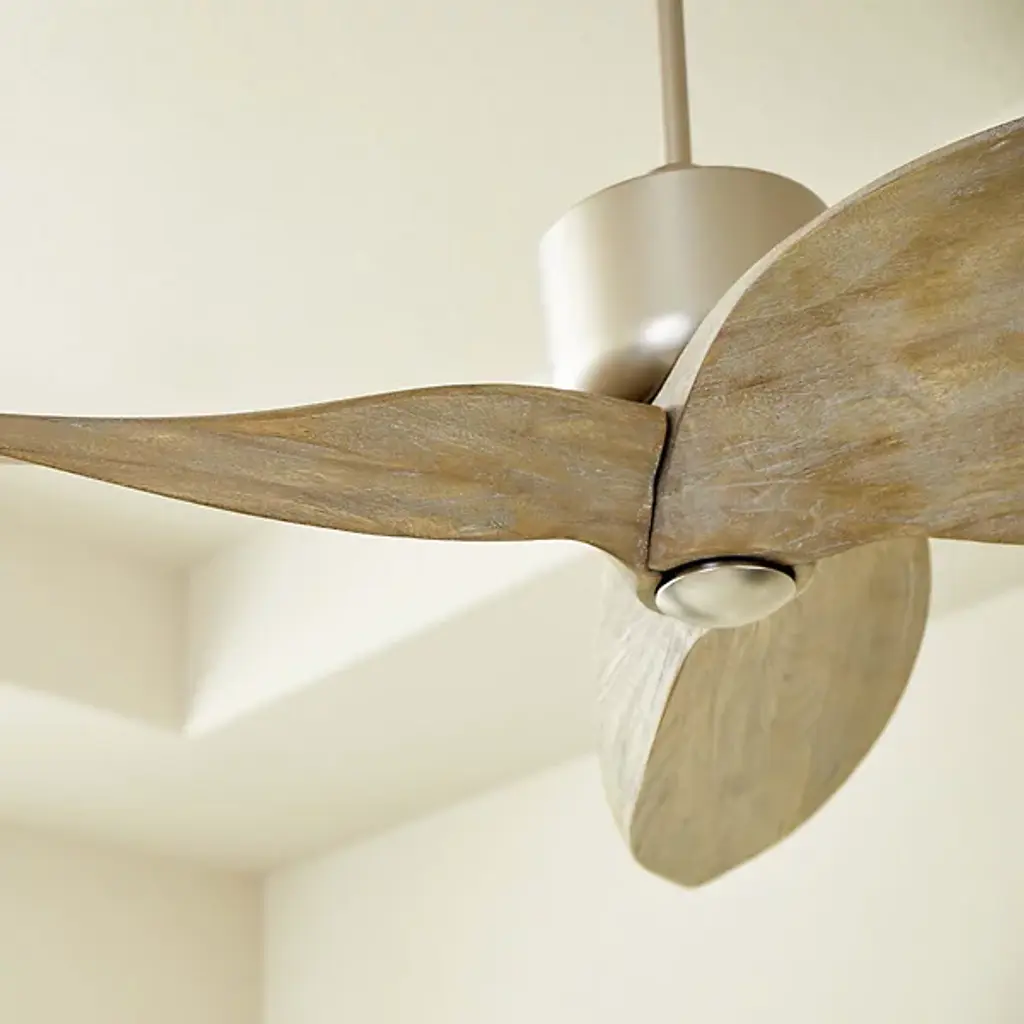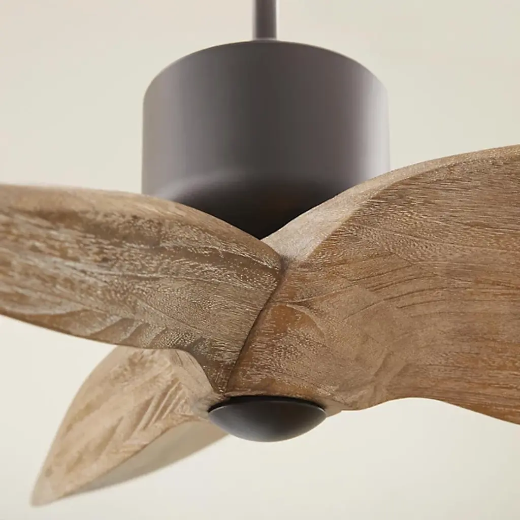 Bring rustic modern style to your living space with the Hawkeye Ceiling Fan by Quorum International. This fan features 3 contouring blades that receive power from an efficient DC motor. You can customize the draft direction within your environment by switching between forward and reverse blade rotations with ease. Your fan operates at 6 speeds for your comfort. A downrod secures to a canopy at your ceiling, keeping your fan suspended in midair.
