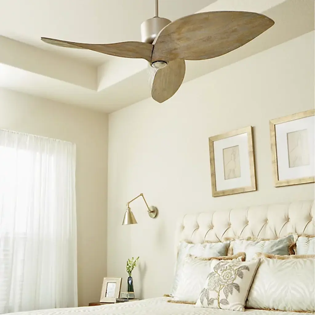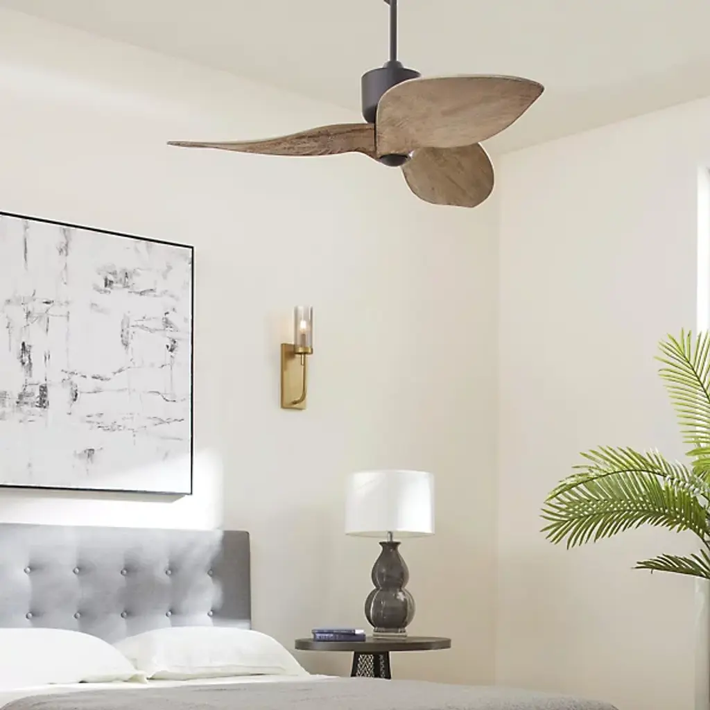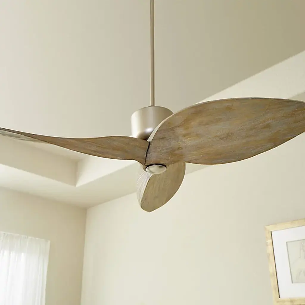 Bring rustic modern style to your living space with the Hawkeye Ceiling Fan by Quorum International. This fan features 3 contouring blades that receive power from an efficient DC motor. You can customize the draft direction within your environment by switching between forward and reverse blade rotations with ease. Your fan operates at 6 speeds for your comfort. A downrod secures to a canopy at your ceiling, keeping your fan suspended in midair.