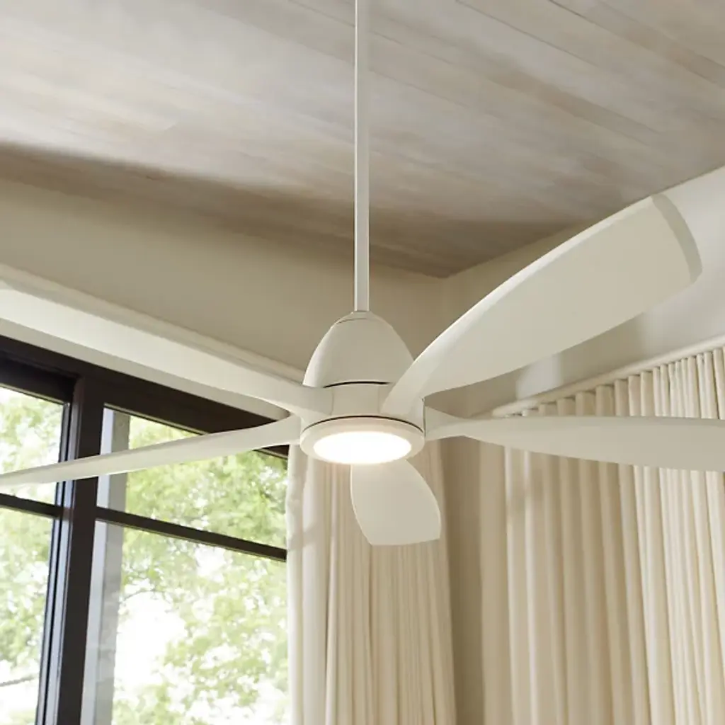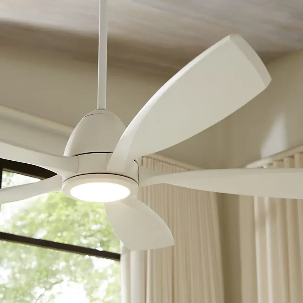 The Quorum International Holt LED Ceiling Fan is as quiet as it is sleek. With its 6-speed DC motor and stylish finish, this ceiling fan silently and smoothly blends well into a variety of contemporary spaces. The Holt’s 5 gently curved fan blades glide through 56 inches of space to help maximize airflow efficiency. Install in living rooms, bedrooms, and other common areas. Light kit and wall control included.