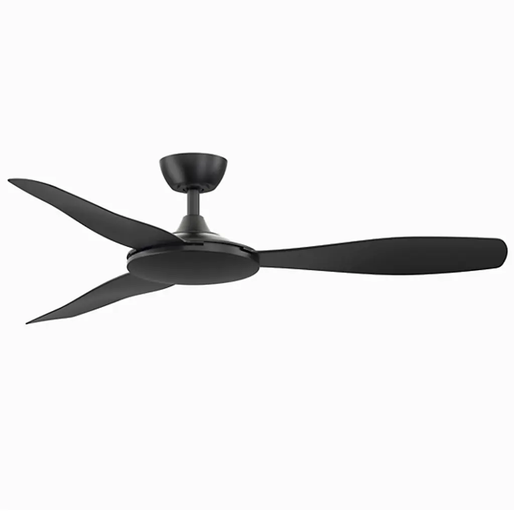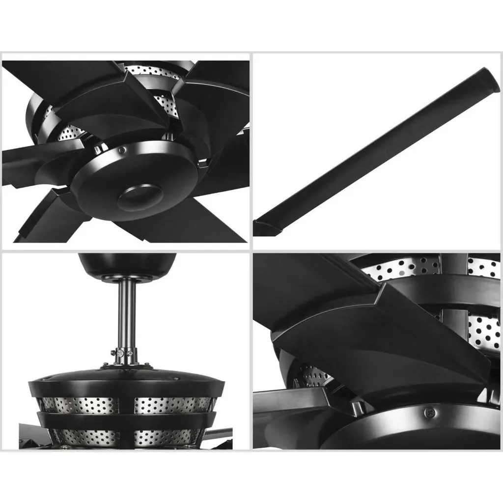 The hassles and headaches of the day fade away under the relaxing airflow created by this ceiling fan. Six expansive aluminum blades with decorative winglets stretch out from the center. The fan is coated in a black finish with complementary highlights to create a perfect design for your home.