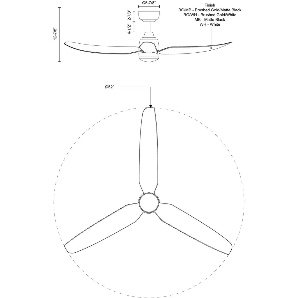 Hugo 52 Inch Brushed Gold Ceiling Fan In Brushed Gold And Matte White