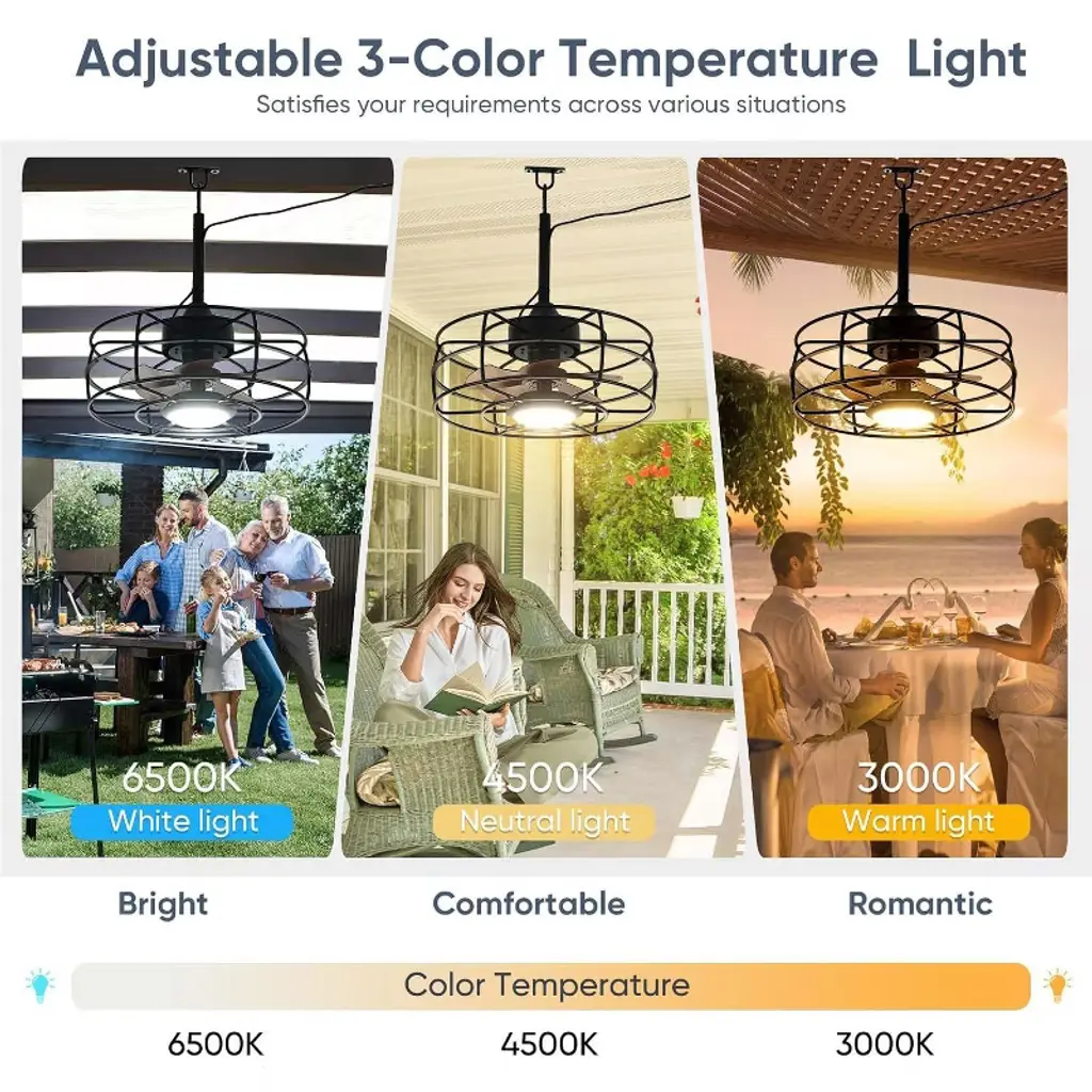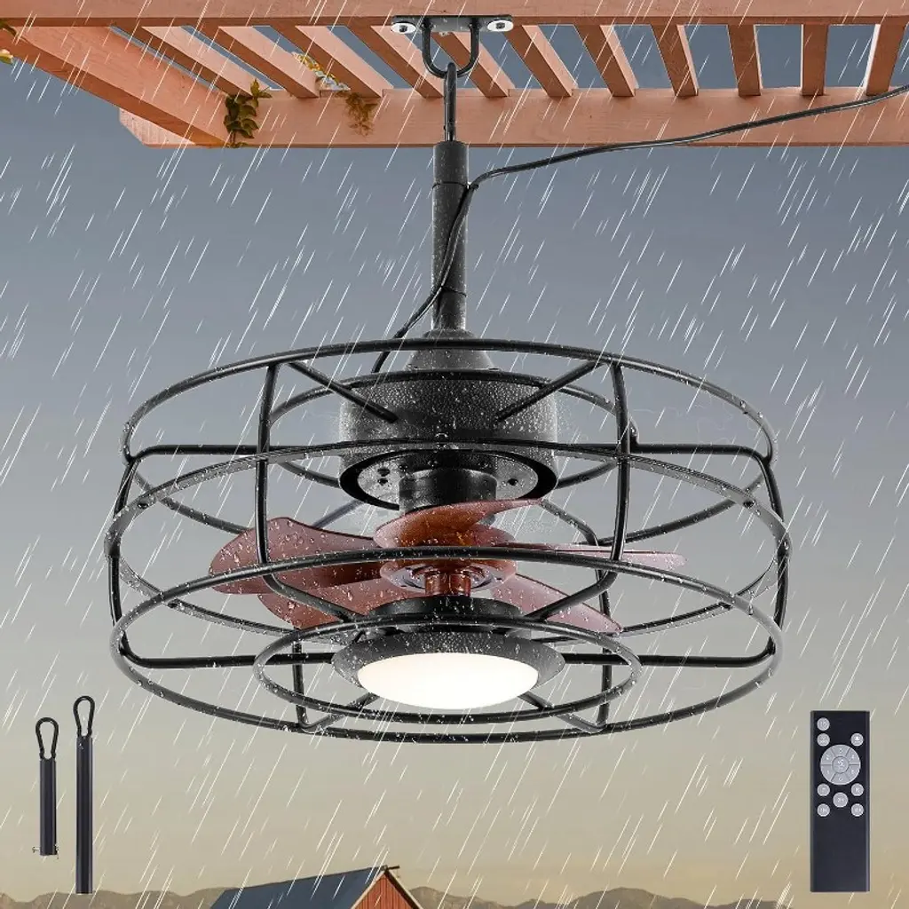 Humhold 20" Outdoor Ceiling Fan With Light, Gazebo Fan, Plug In Ceiling Fan, Waterproof Fans (16.4ft Wire Length)
