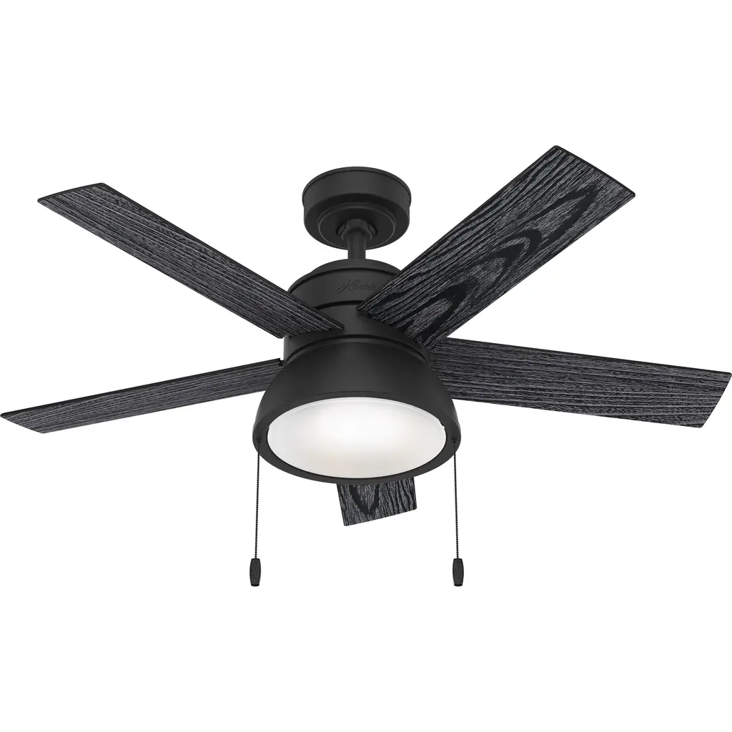 Hunter 44" Erling Ceiling Fan, Matte Black Finish, 5 Blades, Integrated Led Light