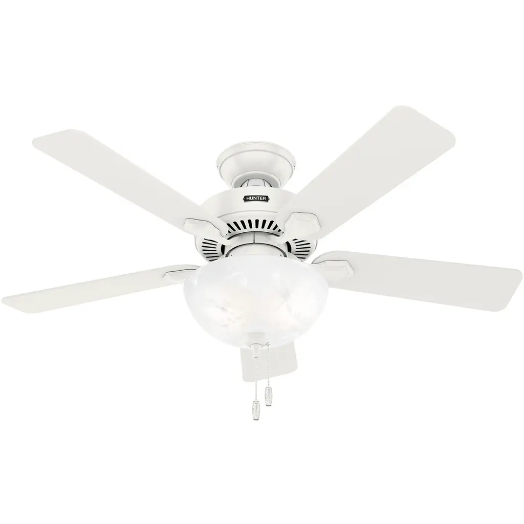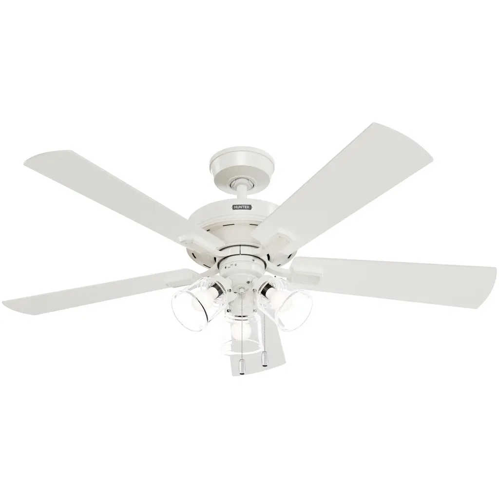 Hunter 52" Builder Elite Ceiling Fan, Fresh White, Lighted, Dc Motor, Incandescent Finish