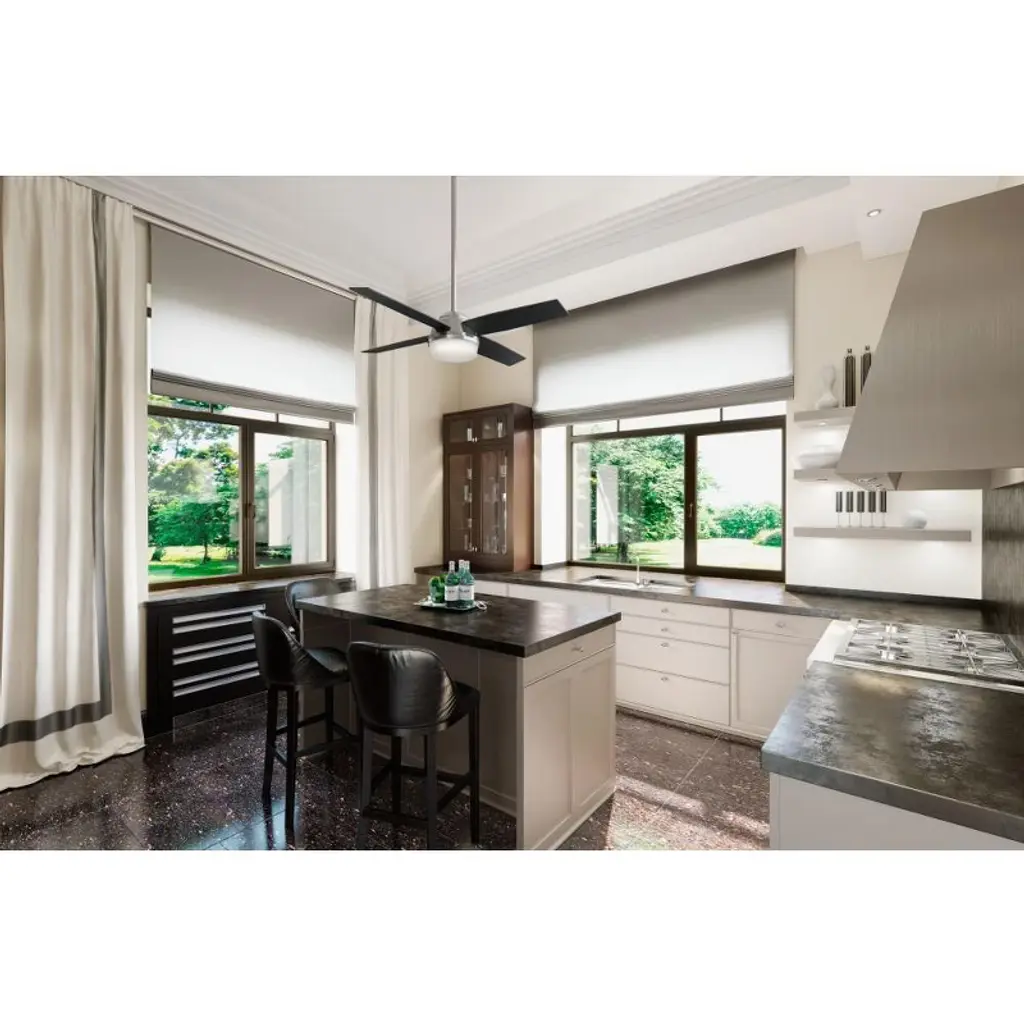 A contemporary fan with mass appeal, the Dempsey will fit flawlessly in your home's modern interior design. The beautiful, clean finish options work together with the high contrast of angles throughout the design to create a look that will keep your space looking current and inspired. Fully dimmable, high-efficient LED bulbs give you total control over your lighting while the 52-inch blade span keeps the large rooms in your home feeling cool. We have a full collection of Dempsey fans so you can keep a consistent look while tailoring the size and features to each room in your house.