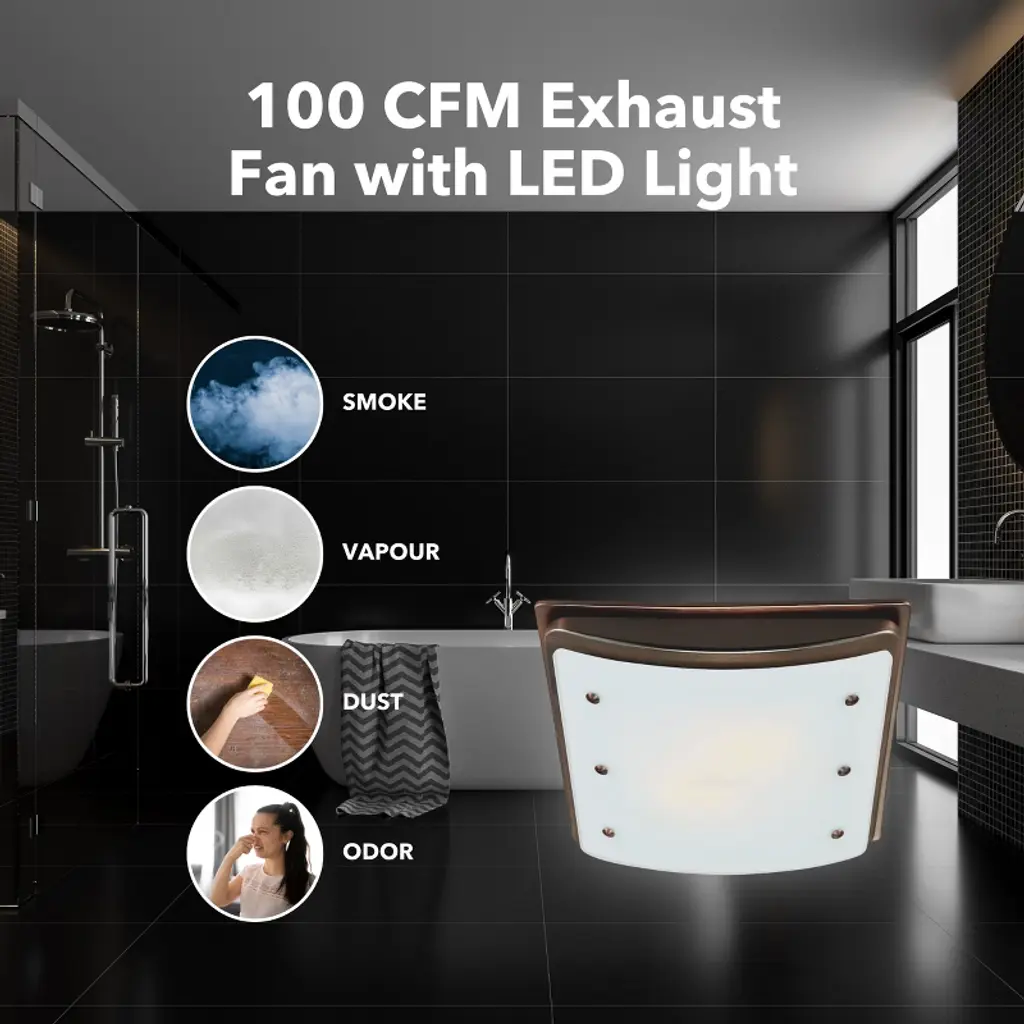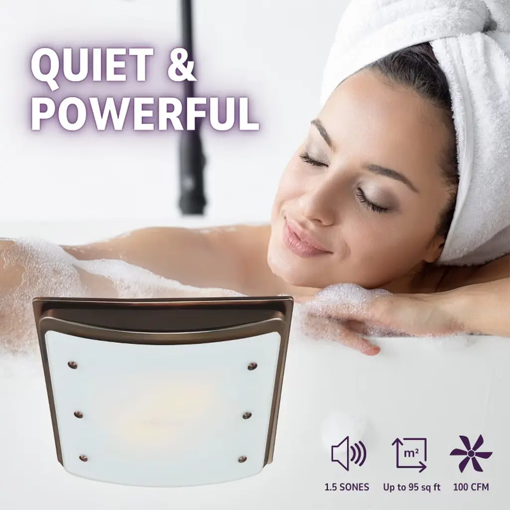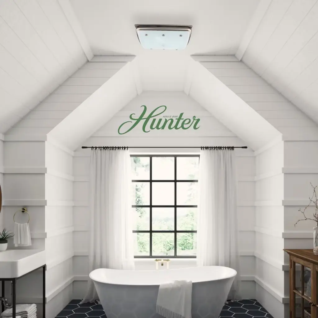 Elevate your bathroom with the Hunter Ellipse 100 CFM Bathroom Exhaust Fan in an elegant Bronze finish with frosted glass. This versatile bathroom fan not only reduces excess moisture and humidity with its 100 CFM of air movement but also operates at an ultra-quiet 1.5 sones, ensuring a peaceful environment for your daily routines. The flush mount design adds a touch of sophistication, making it a stylish addition to any bathroom decor. The Hunter exhaust fan also fights odors and circulates air, improving the overall air quality in your bathroom.