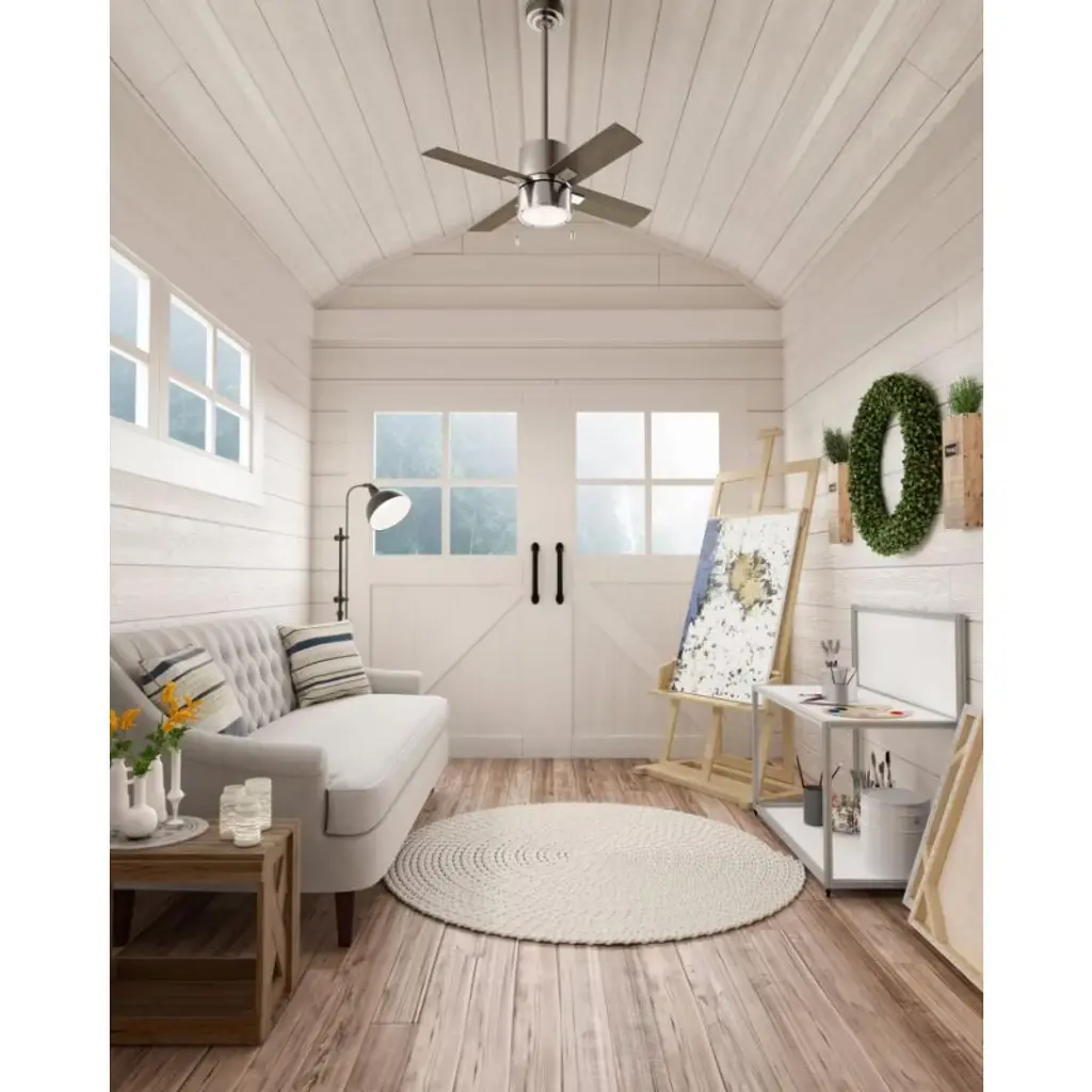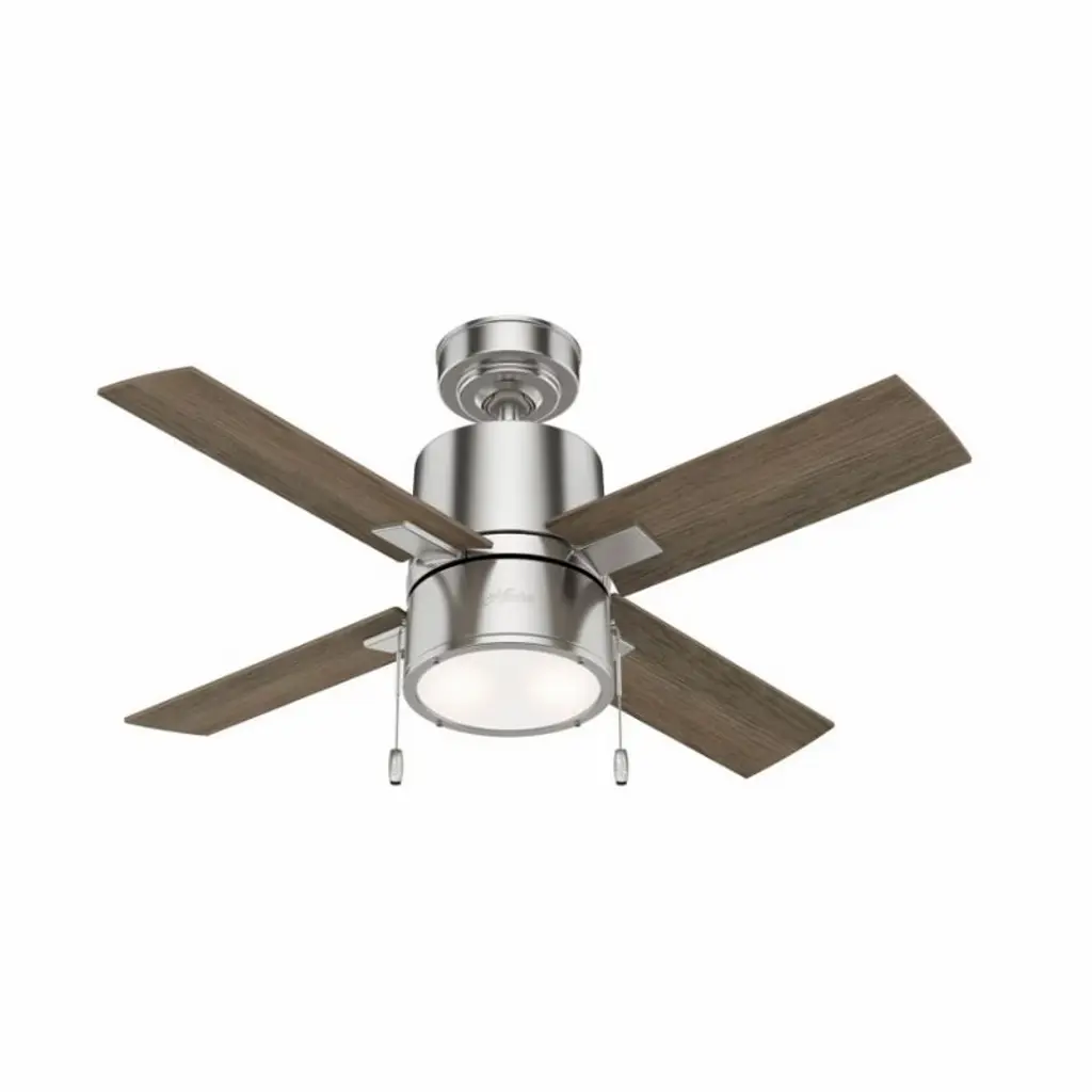 Hunter Fans 42" Beck Lighted Ceiling Fan Brushed Nickel With 4 Light Gray Oak Blades For Modern Spaces