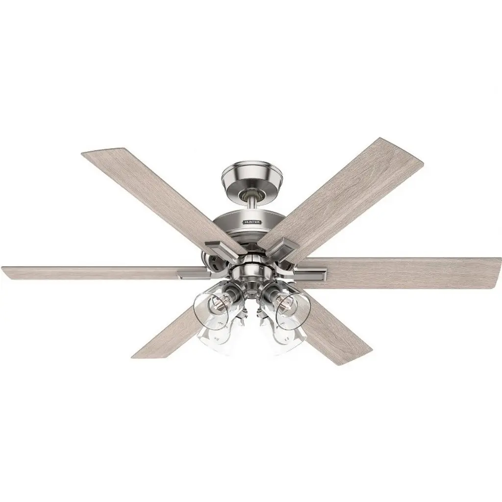 Hunter Fans 52" Georgetown Ceiling Fan Brushed Nickel Light Gray Oak 6-blade Integrated Led Remote Control