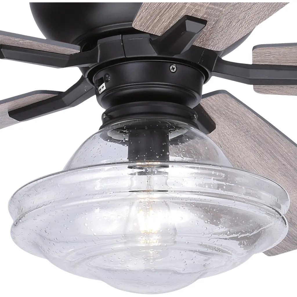 The Huntley is a timeless collection inspired by mid-century small-town aesthetics. The vintage schoolhouse glass is the focal point of this design with its unique profile. Add a vintage Edison style filament bulb to the included light kit to complete the look. This fan is compatible with sloped ceilings and includes a 6 inch down rod (longer down rods sold separately). Remote control included for added convenience.
