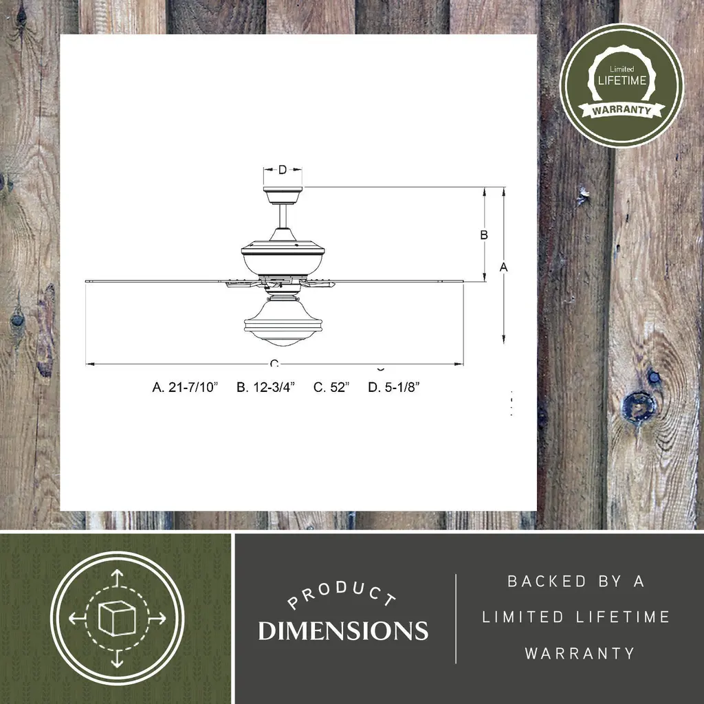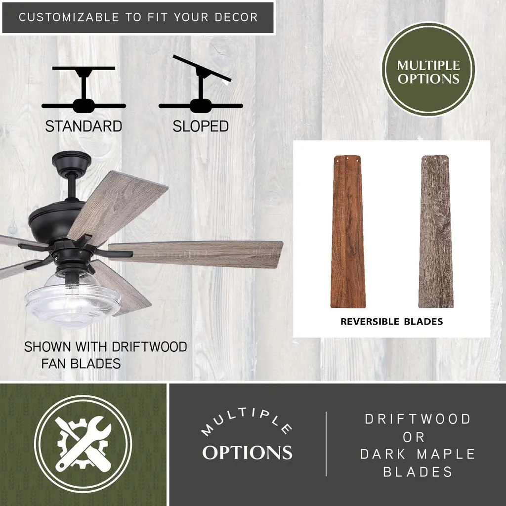 Huntley 52 Inch Bronze With Driftwood-Dark Maple Blades Ceiling Fan, Integrated Dimmable Remote