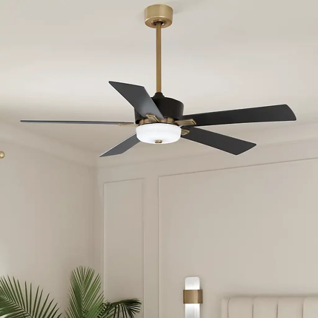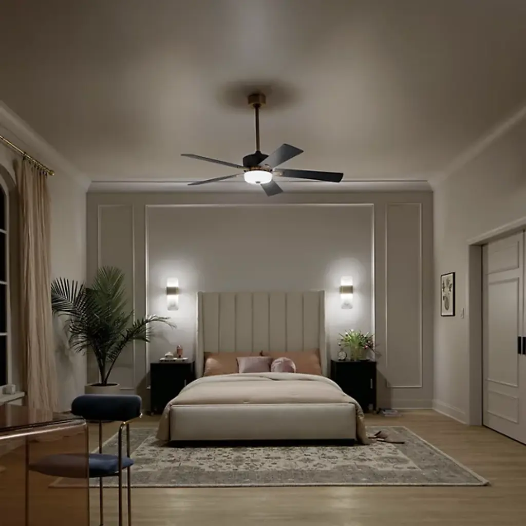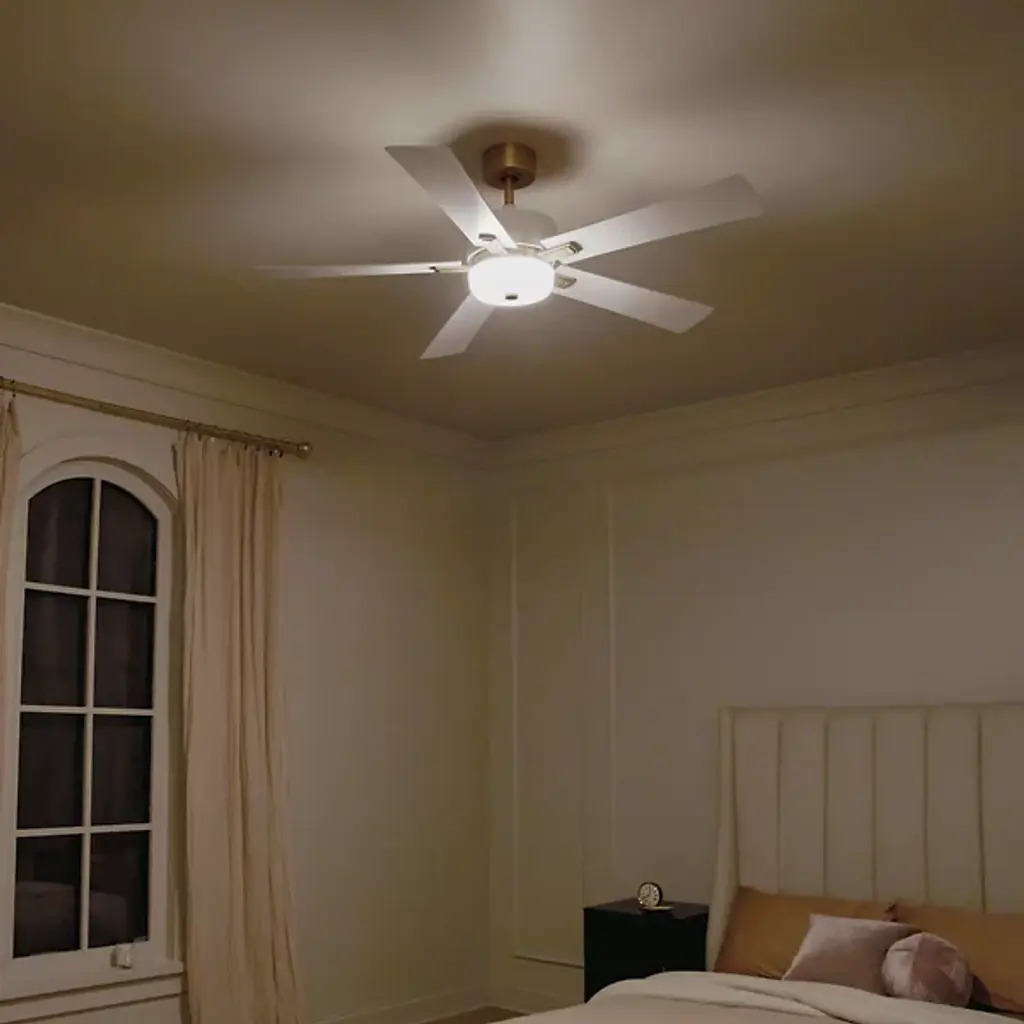 Cool down with the Icon LED Ceiling Fan by Kichler. A canopy at your ceiling supports your fan’s midair suspension. Chic, reversible blades are powered by a DC motor, letting your room’s air circulate courtesy of the blades’ midair rotation. This fan comes with an integrated LED, which rests behind a shade of frosted glass. A bright light emanates from this LED so that your living area maintains a vibrant glow.