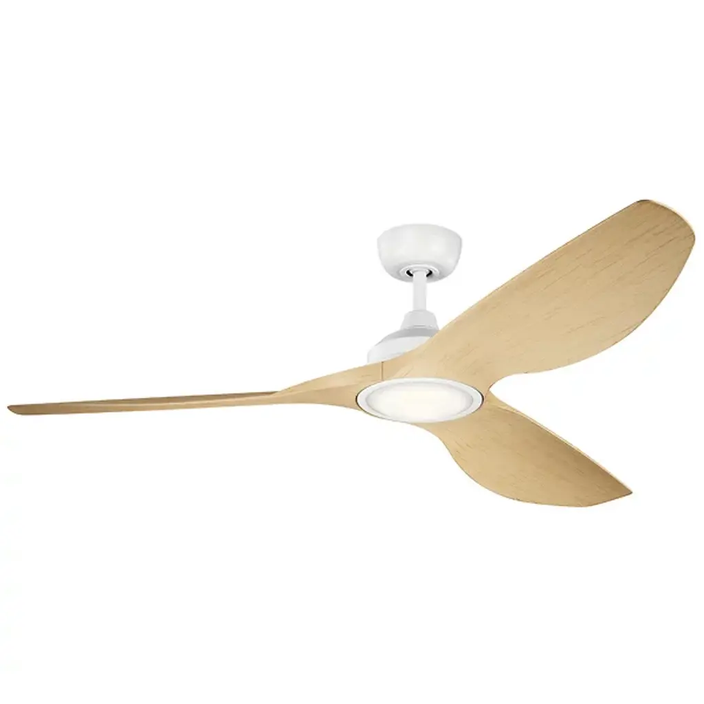 Like a streamlined propeller found on ships, the Imari 65" LED Ceiling Fan by Kichler sports a three-bladed design that provides ample amounts of airflow to contemporary interior living spaces. The fixture’s 3 blades, built at a 14-degree pitch, are powered by a quiet and energy-efficient DC motor. The DC motor enables the fan to have up 6 different set speeds, which can be toggled by the fixture’s included wall control system. The fixture also utilizes integrated LED lamping as well as white polycarbonate lens to provide rich, immersive lighting to the immediate application area.