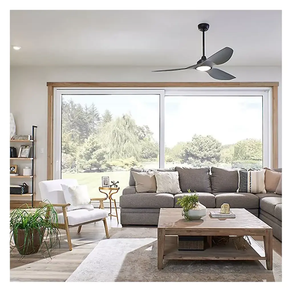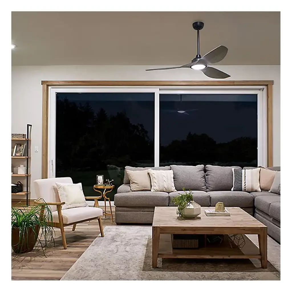 Like a streamlined propeller found on ships, the Imari 65" LED Ceiling Fan by Kichler sports a three-bladed design that provides ample amounts of airflow to contemporary interior living spaces. The fixture’s 3 blades, built at a 14-degree pitch, are powered by a quiet and energy-efficient DC motor. The DC motor enables the fan to have up 6 different set speeds, which can be toggled by the fixture’s included wall control system. The fixture also utilizes integrated LED lamping as well as white polycarbonate lens to provide rich, immersive lighting to the immediate application area.