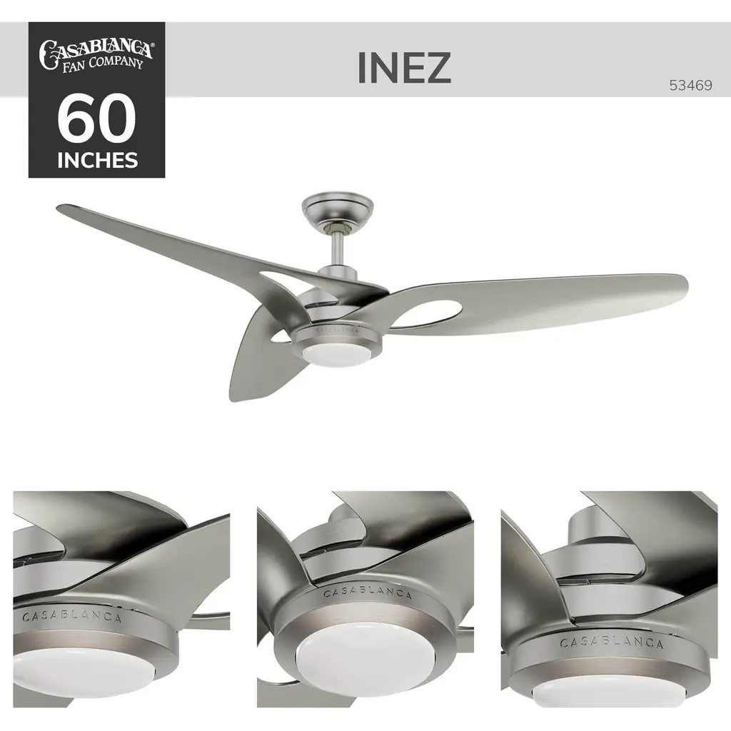 Inez 60 Inch Brushed Nickel With Matte Nickel Blades Outdoor Ceiling Fan