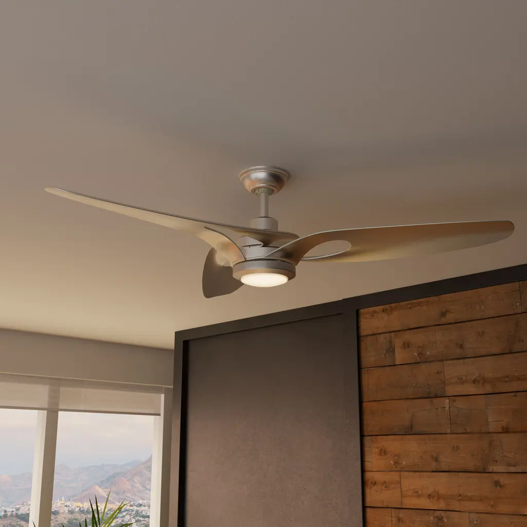 Infuse a touch of modern sophistication into your outdoor spaces with the Inez Outdoor Ceiling Fan. Designed with energy efficiency in mind, this ENERGY STAR certified fan is 64% more efficient, powered by a whisper-quiet 6-speed Eco Whisper DC motor. Perfectly damp-rated for covered patios or porches, it ensures long-lasting performance. Illuminate your evenings with the included 20W energy-efficient LED bulb, or opt for a cleaner, more minimalist look using the included No Light Cap. Seamlessly controlled with the included wall control, the Inez transforms your space into a serene retreatoffering effortless comfort, energy savings, and refined outdoor style.