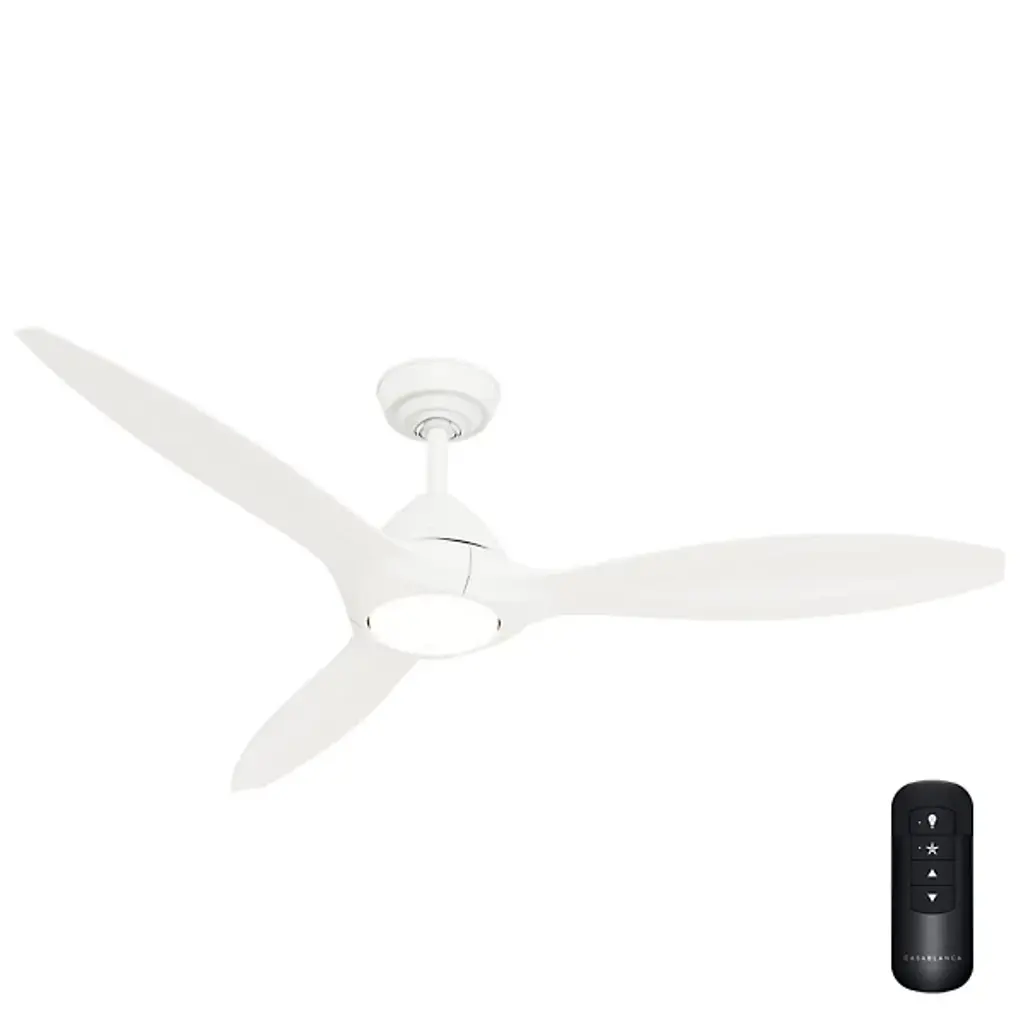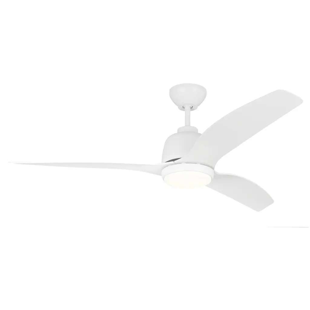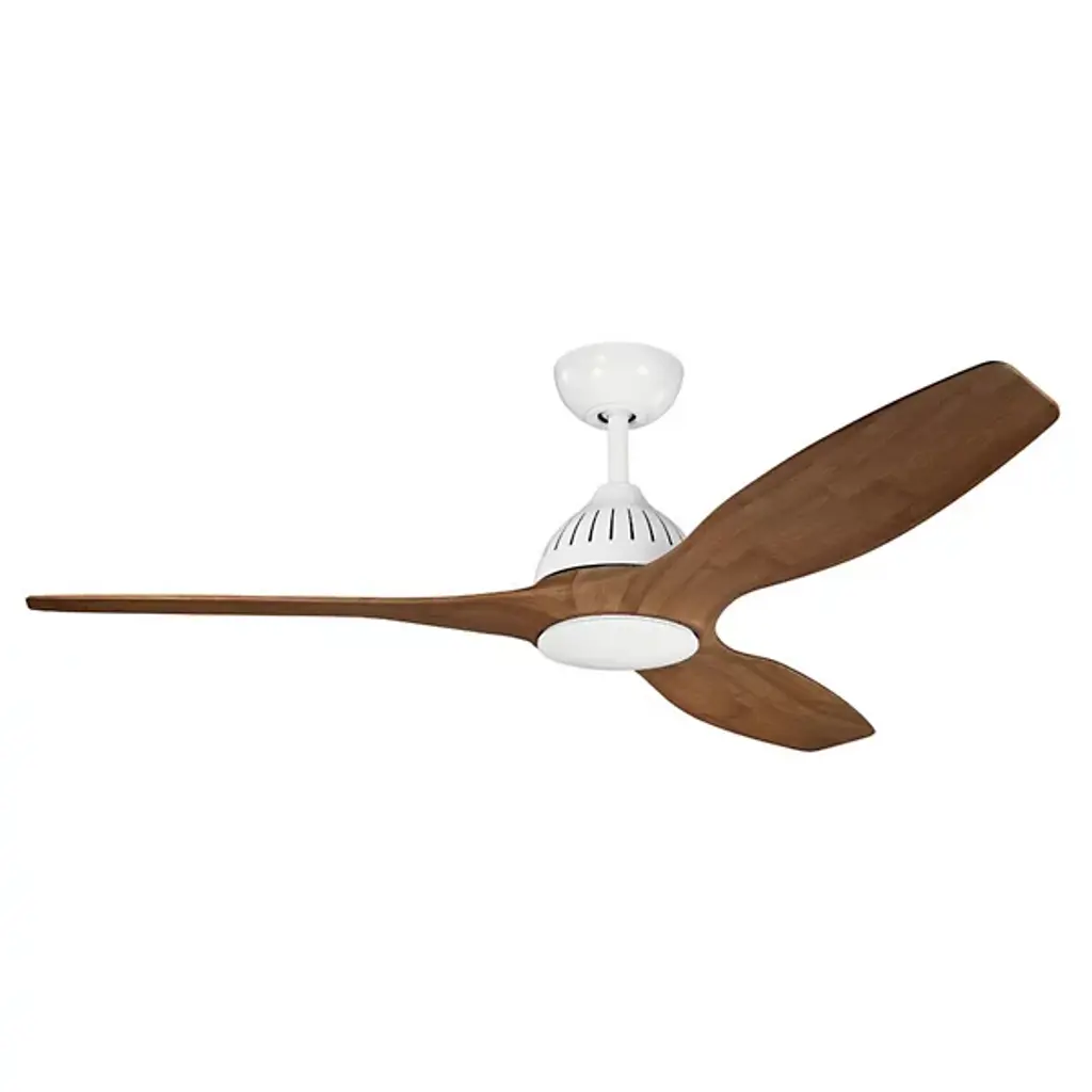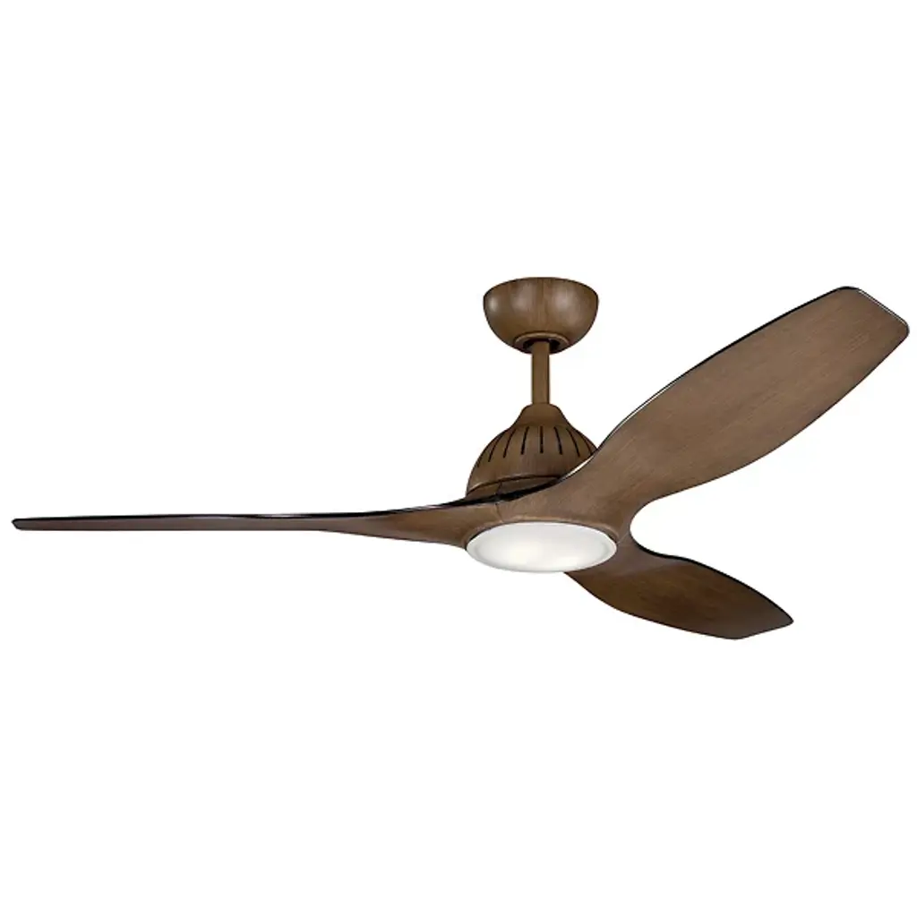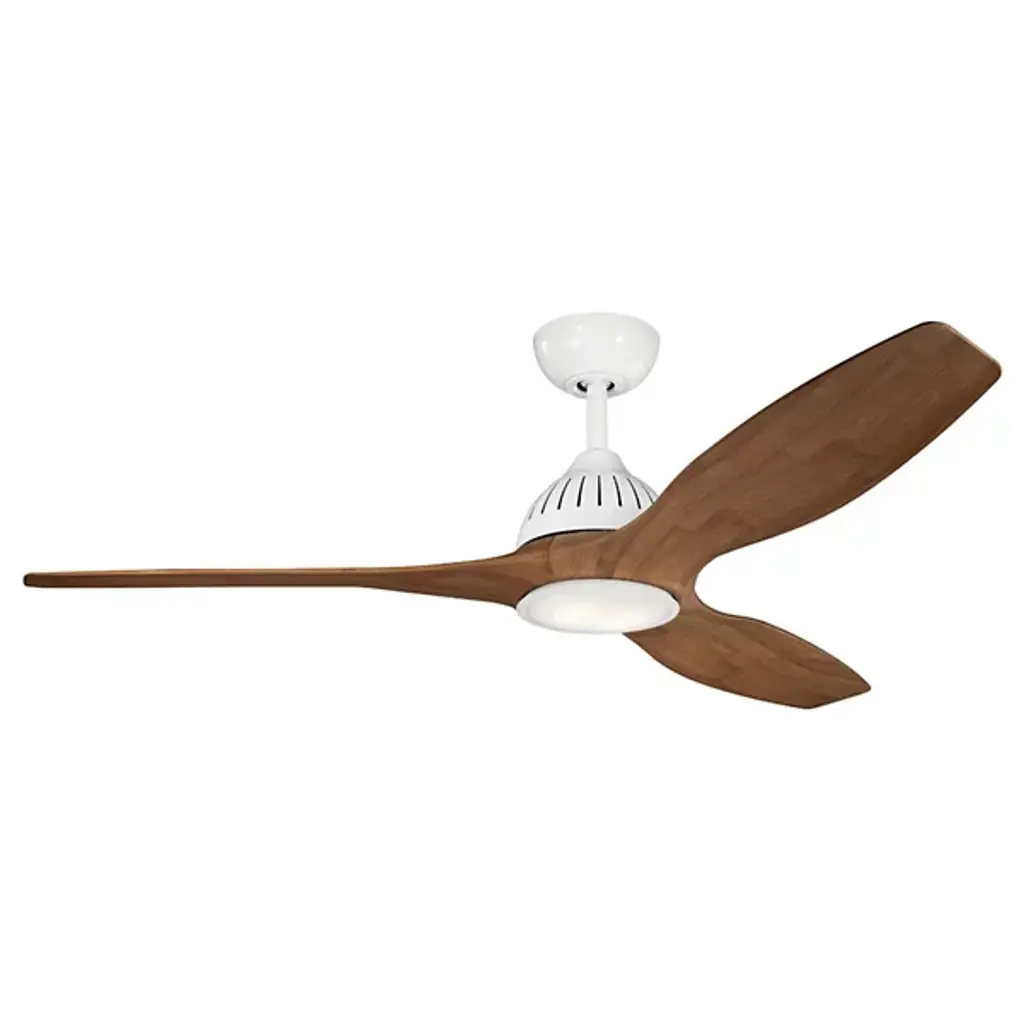 Designed with complimenting aesthetics to create the illusion of one cohesive piece, the Jace 60" LED Ceiling Fan by Kichler sports minimalist aesthetics while providing cool amounts of airflow and immersive lighting auras. The fan’s 3 blades reach a total diameter of 60 inches and are designed with a 12-degree pitch. This pitch and diameter allow the fan to disperse a cool, refreshing airflow to rooms like the dining area, living rooms, and bedrooms. The fixture also makes use of integrated LED lamping and cased etched opal glass to radiate a warm, textured lighting experience.