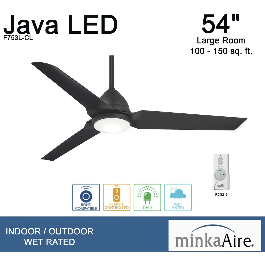 This 1 light Outdoor Ceiling Fan from the Java collection by Minka-Aire will enhance your home with a perfect mix of form and function. The features include a Coal finish applied by experts. This item qualifies for free shipping!