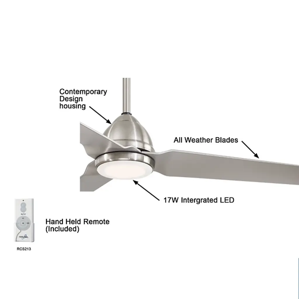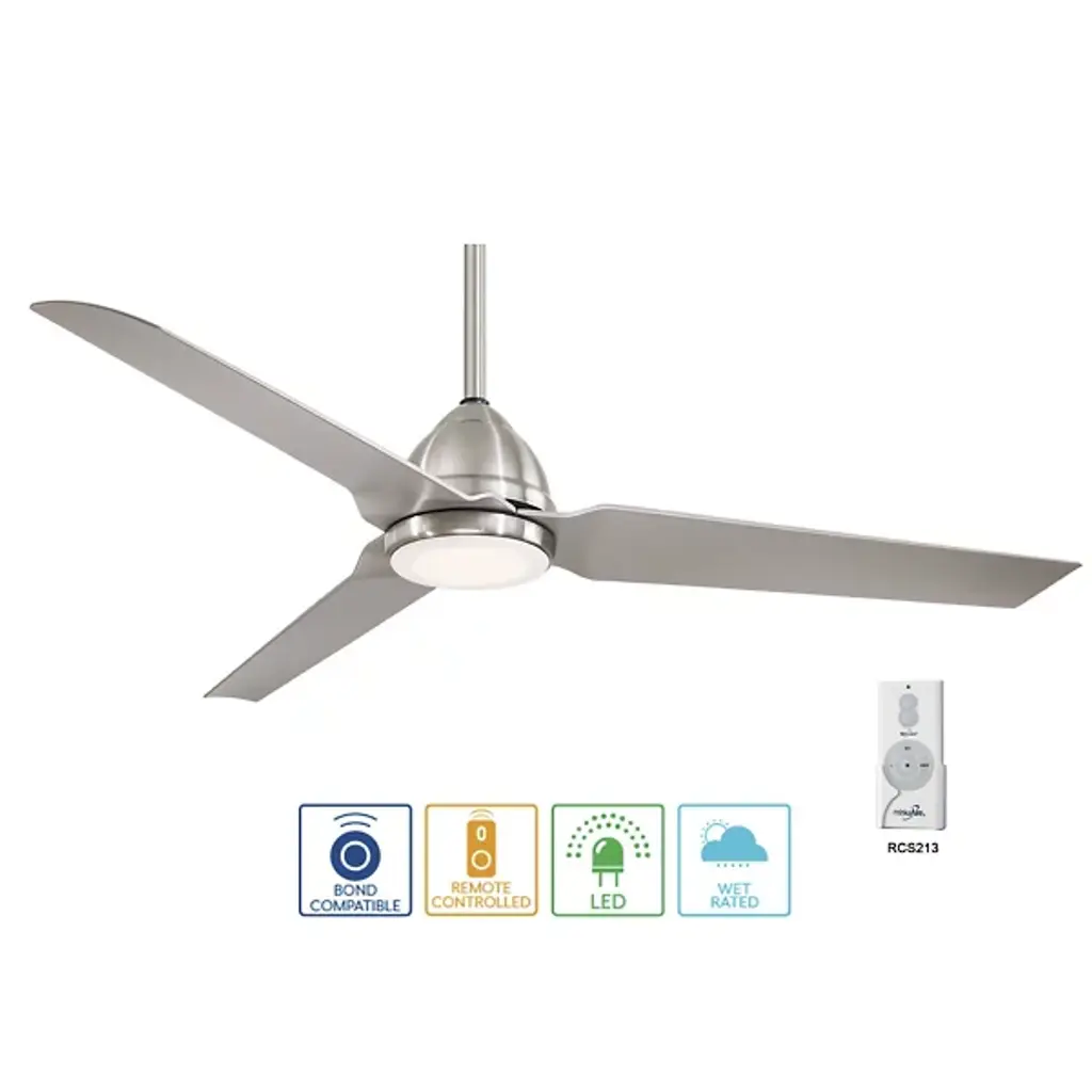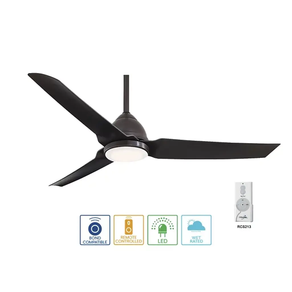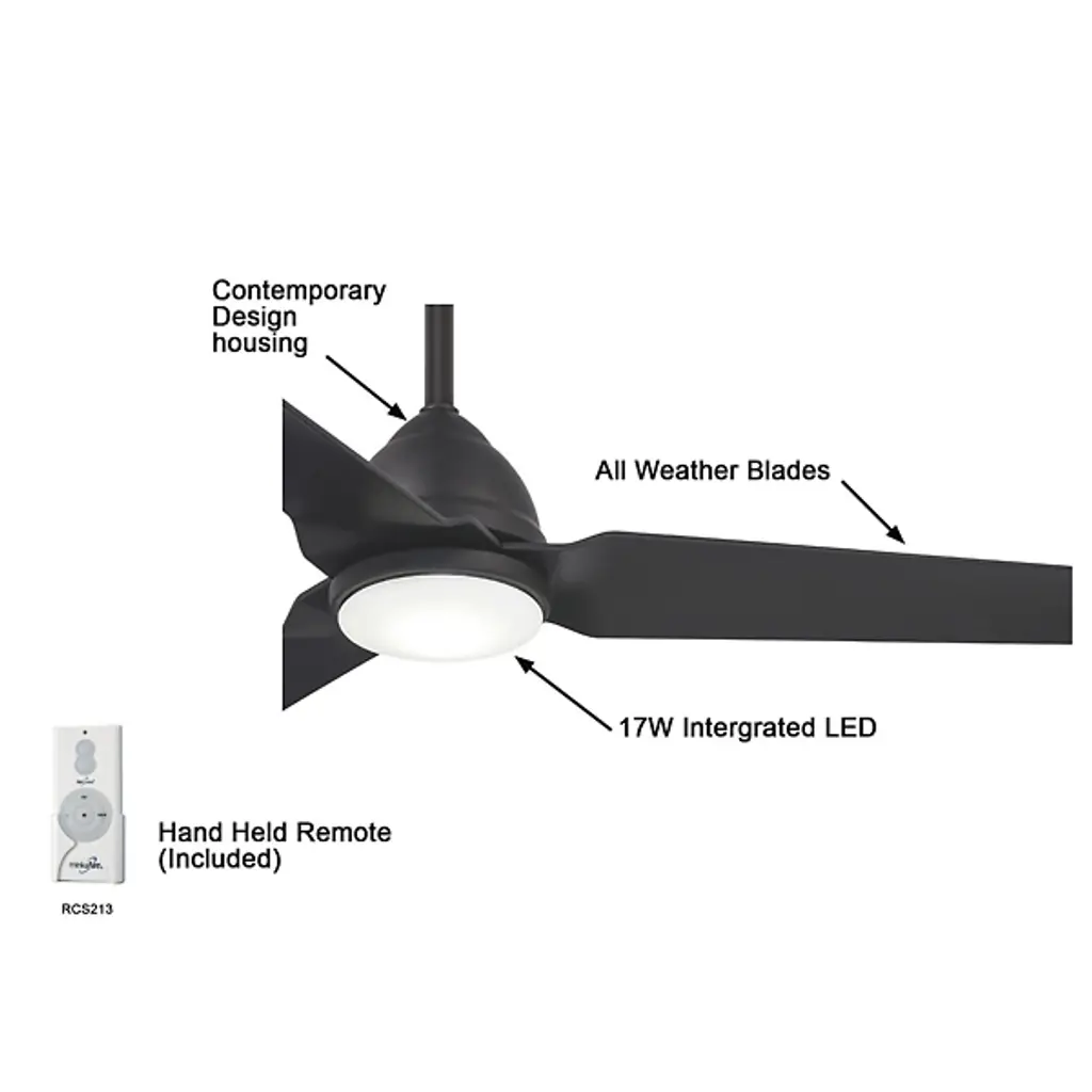 Sleek, smooth and outright sensational. The Minka Aire Java Outdoor LED Ceiling Fan comes ready to serve all of your indoor and outdoor cooling needs. With a swift 54 inch blade sweep, the Java Outdoor LED Ceiling Fan quietly circulates 3 flat blades with seamless fluidity. The fan also provides an LED downlight for additional luminance with energy and cost-saving value. The Java Outdoor LED Ceiling Fan comes with a handheld remote and is able to withstand wet environments.