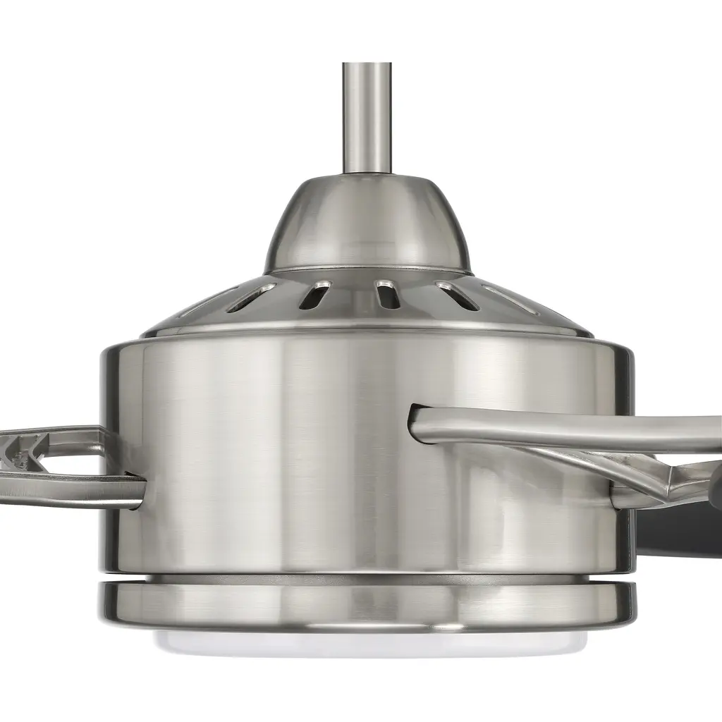 Beautiful and balanced, the indoor/outdoor damp rated Journey by Craftmade 64" ceiling fan features an energy saving, six-speed reversible DC motor and custom blade arm and blades that glide through the air like a paddle through water. The dimmable integrated LED Light includes an optional lens cover should you choose not to use the light. Remote and wall controls and WIFI compatibility make this ideal for almost any situation.
