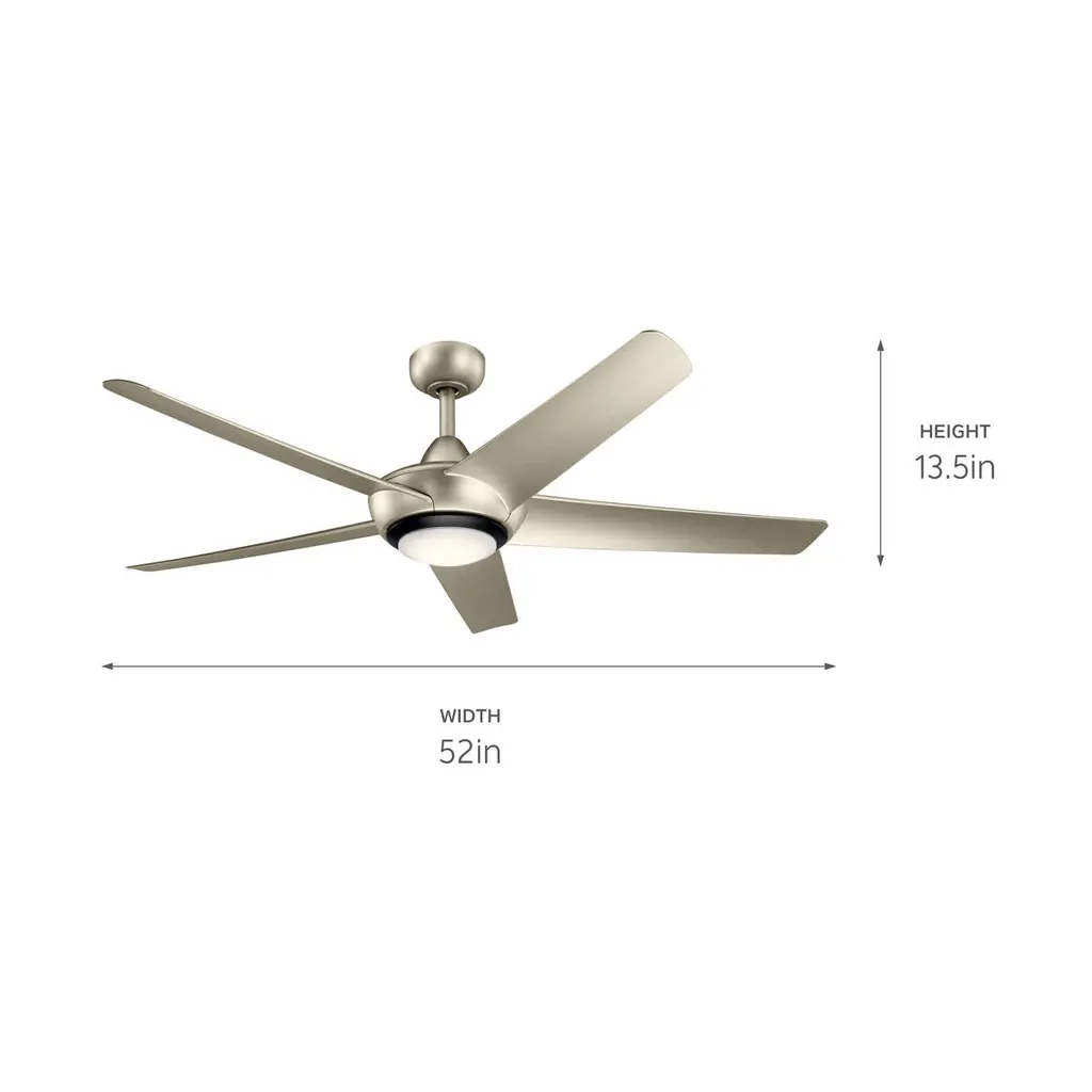 Kapono 52 inch LED Ceiling Fan in Nickel with Frosted White Polycarbonate Lens