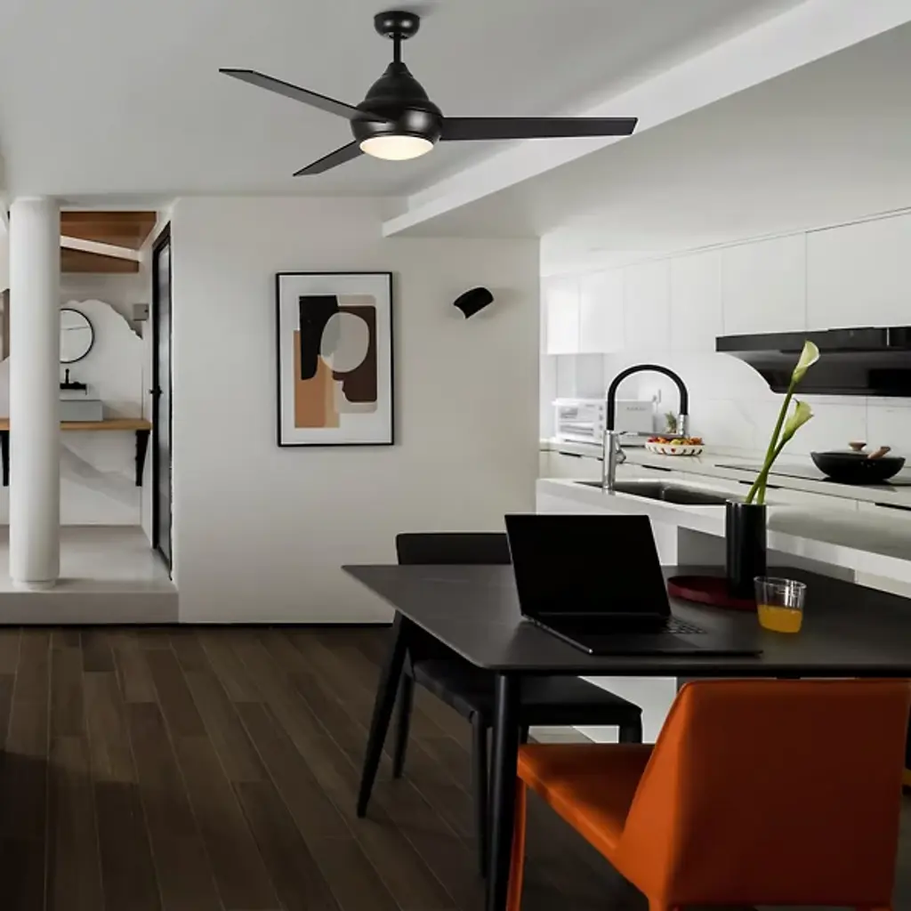 A contemporary design with industrial influences. The Kendrick LED Ceiling Fan is presented by Carro USA. The sleek and squared-off blades add an interesting visual appeal, and the entirety of the bodice is finished beautifully. Integrated LED illumination provides lower energy consumption and a longer lifespan than the average lighting application, while incredibly efficient and completely silent DC motors have elevated this handsome furnishing with ultimate practicality.