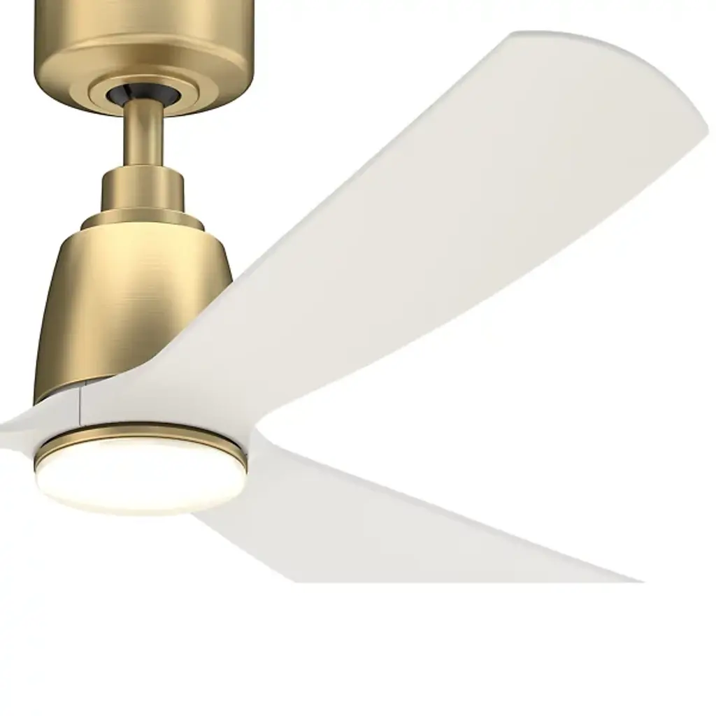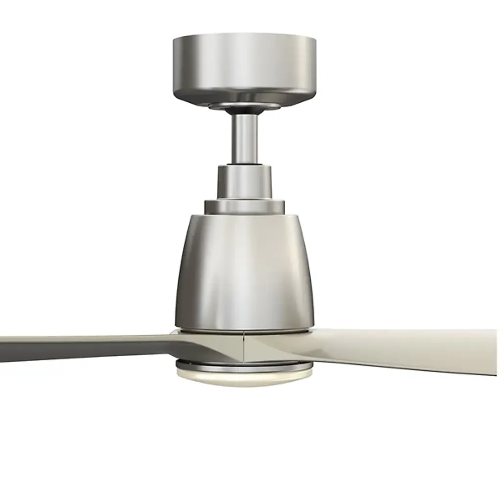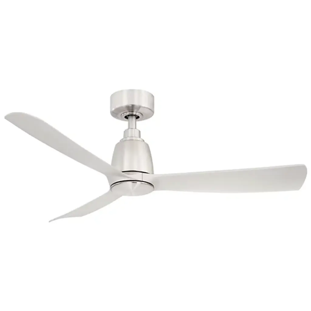 Cool a variety of spaces with the smooth stylings of the Kute Ceiling Fan by Fanimation Fans. Starting simply with a round canopy, it drops a short stem to a sleek three-bladed fan held below a flared housing. The blades are curved at their ends and sweep gently around with the aid of a power-efficient DC motor, effortlessly activated at the push of a button on the included Bluetooth remote. A lighting kit can be added below but is not included.