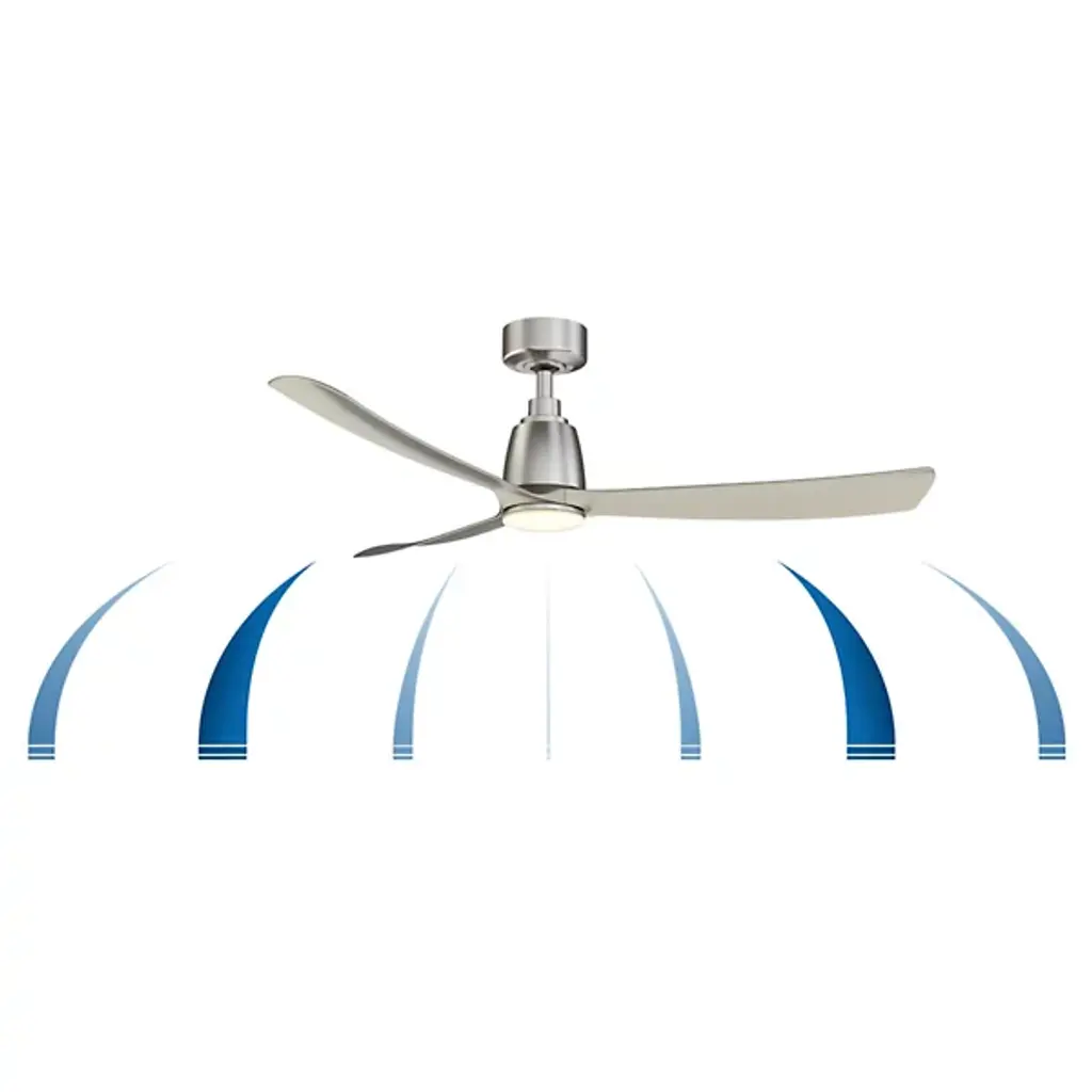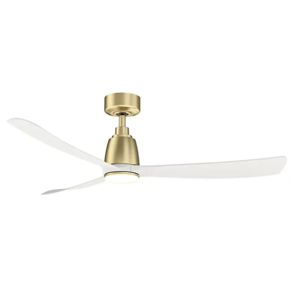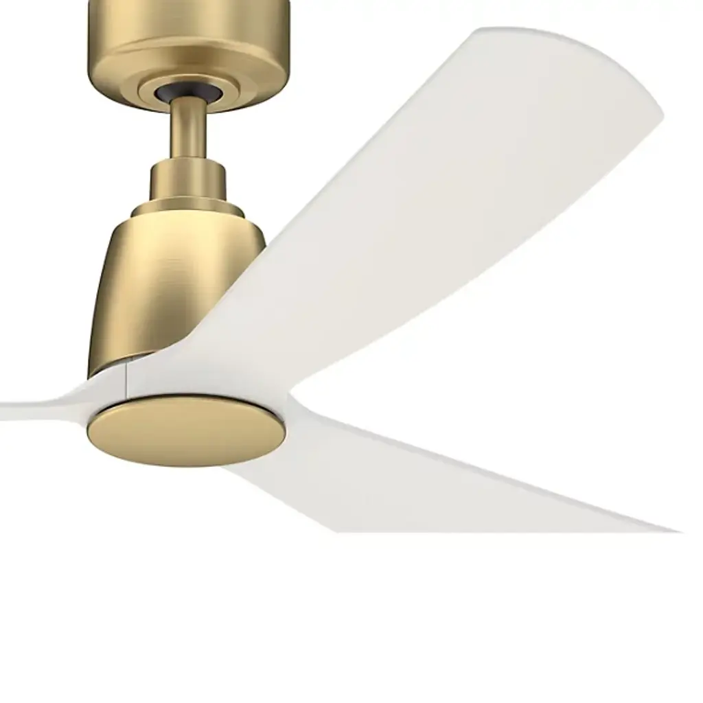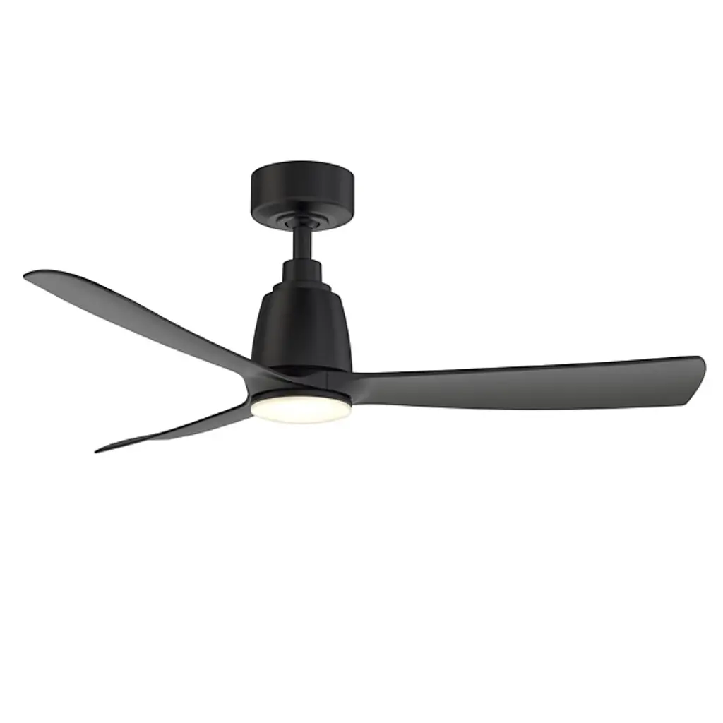 Cool a variety of spaces with the smooth stylings of the Kute Ceiling Fan by Fanimation Fans. Starting simply with a round canopy, it drops a short stem to a sleek three-bladed fan held below a flared housing. The blades are curved at their ends and sweep gently around with the aid of a power-efficient DC motor, effortlessly activated at the push of a button on the included Bluetooth remote. A lighting kit can be added below but is not included.