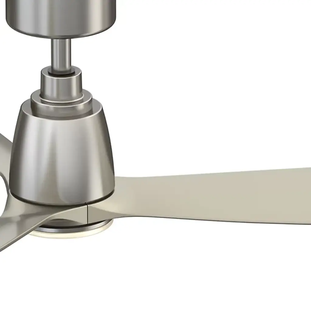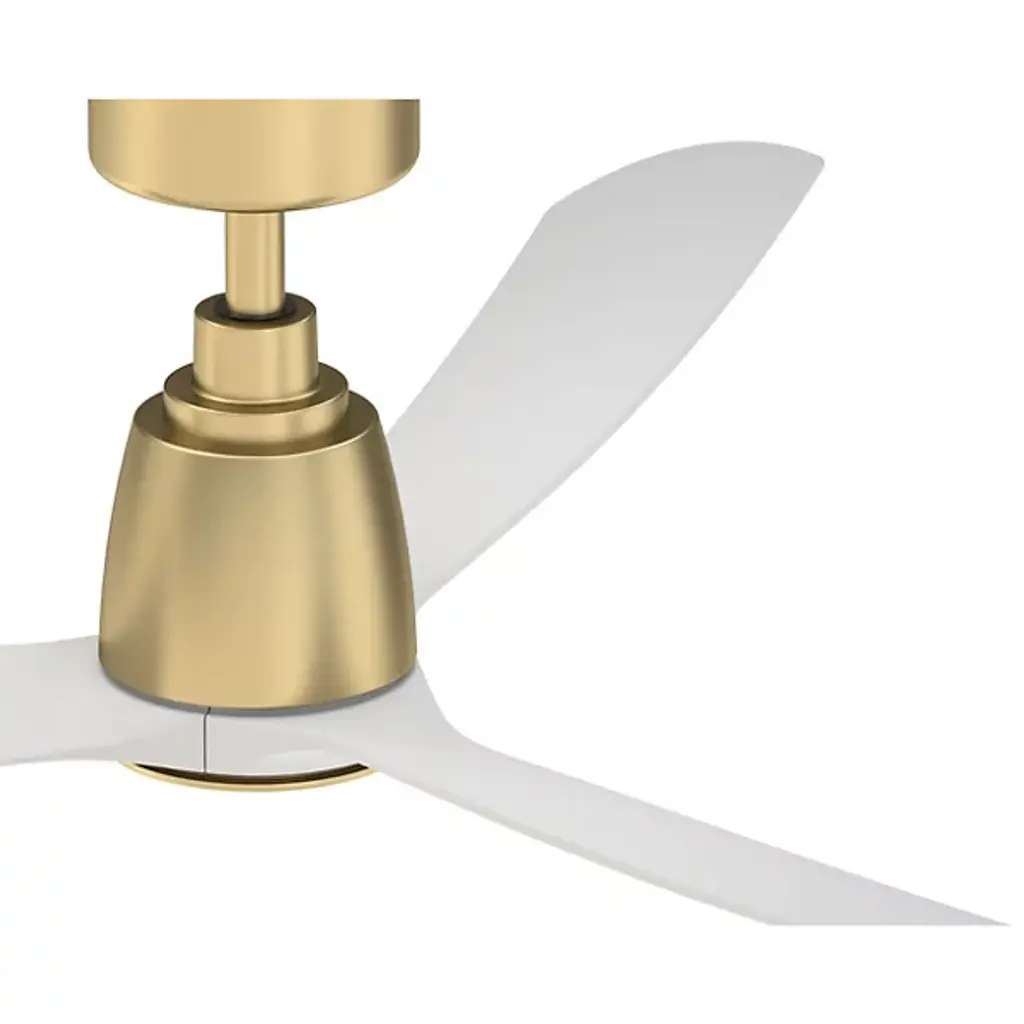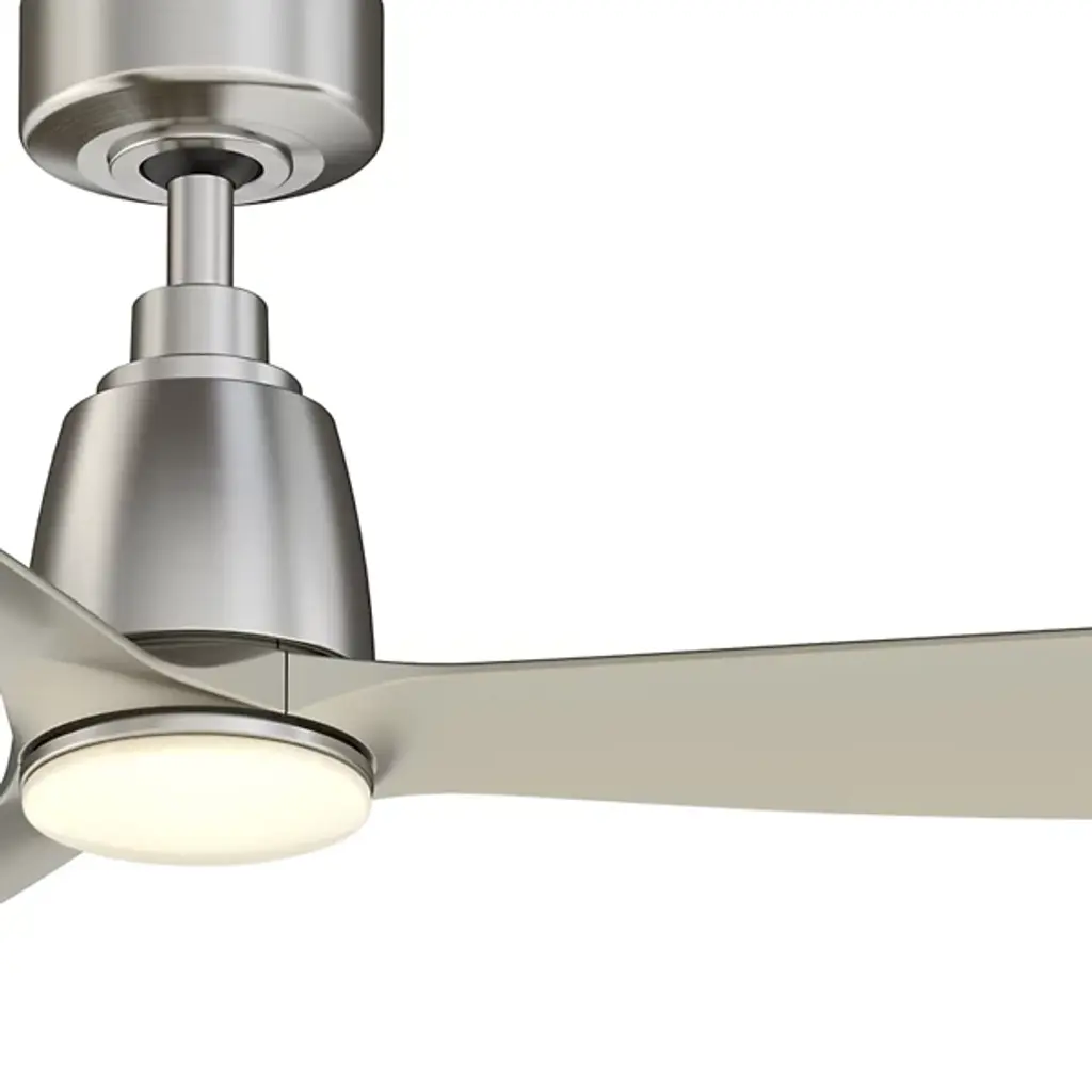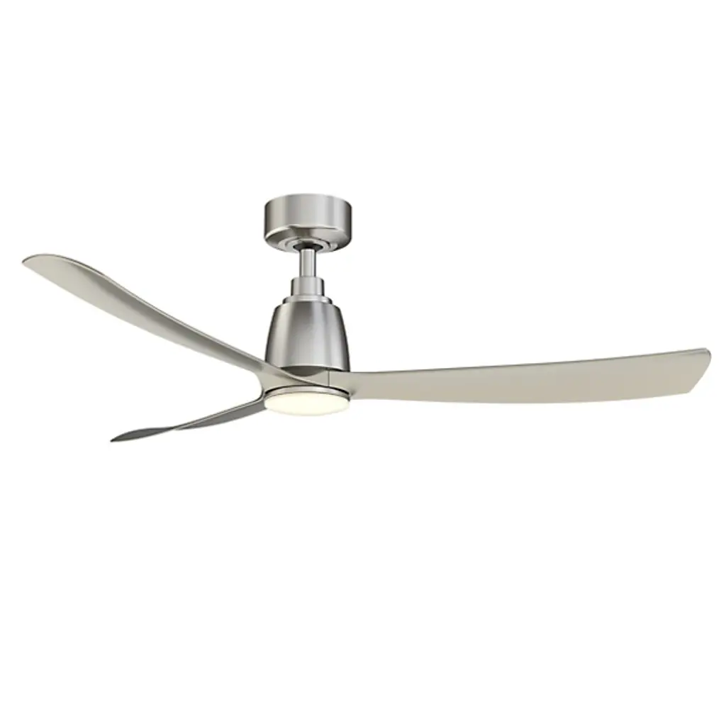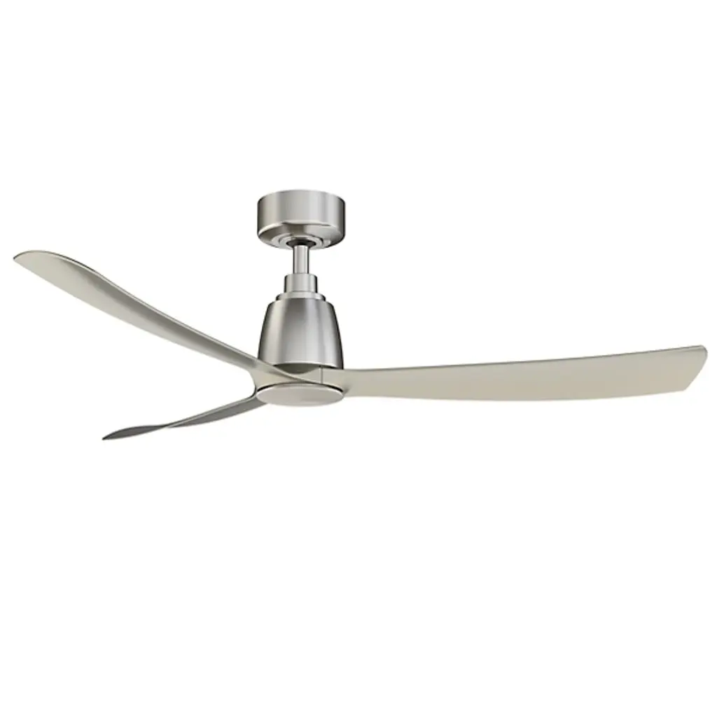 Cool a variety of spaces with the smooth stylings of the Kute Ceiling Fan by Fanimation Fans. Starting simply with a round canopy, it drops a short stem to a sleek three-bladed fan held below a flared housing. The blades are curved at their ends and sweep gently around with the aid of a power-efficient DC motor, effortlessly activated at the push of a button on the included Bluetooth remote. A lighting kit can be added below but is not included.