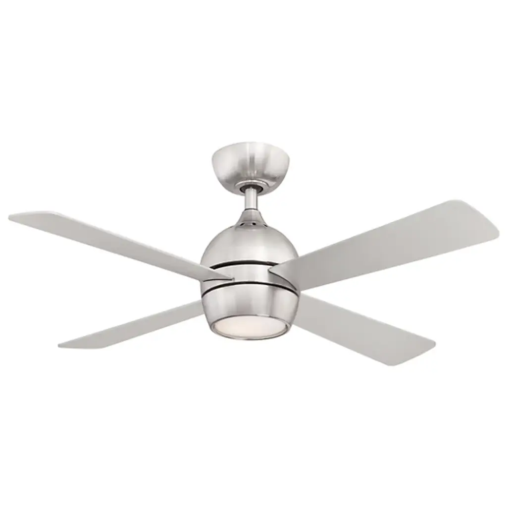 Accent your interior spaces with a tasteful addition using the Kwad Ceiling Fan by Fanimation Fans. A rounded canopy sends down a short stem to a larger housing, setting a four-bladed fan slightly above a downward-facing LED kit integrated into the housing’s base. The fan and light activate at the touch of a button, with a gentle ambiance shining down from above while the powerful AC motor moves thousands of cubic feet of air per minute.