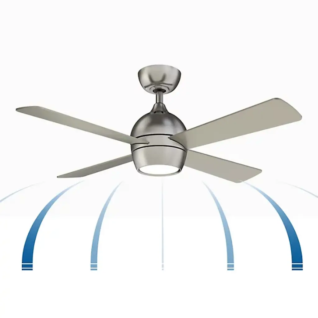 Accent your interior spaces with a tasteful addition using the Kwad Ceiling Fan by Fanimation Fans. A rounded canopy sends down a short stem to a larger housing, setting a four-bladed fan slightly above a downward-facing LED kit integrated into the housing’s base. The fan and light activate at the touch of a button, with a gentle ambiance shining down from above while the powerful AC motor moves thousands of cubic feet of air per minute.