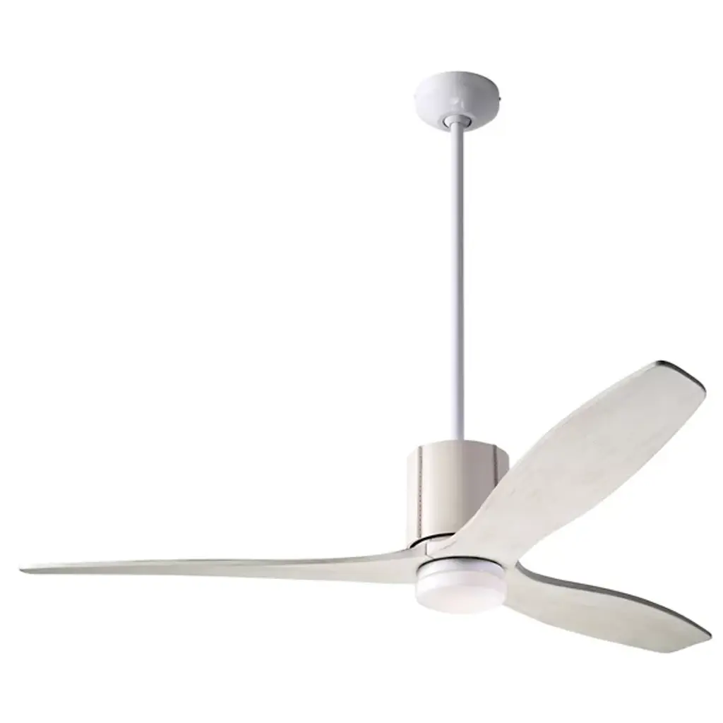 Technical prowess meets artful appeal in the leather-wrapped LeatherLuxe Ceiling Fan from The Modern Fan Company. Designer Dave Ellis finds the perfect balance between his artisanal informed aesthetic and the highly efficient character of The Modern Fan Company. The refined nature of this piece and its included 3” and 14” gloss white down rods make it a versatile complement to your room’s architecture. Its soft leather wrap further underlines the cohesiveness this piece offers, as its fine stitching and lustrous surface can complement other leather furnishings in your room. A trio of CNC milled Paulownia wood blades complete the neat silhouette with subtle contouring that provides refined looks and great air circulating capabilities. Your choice of remote offers easy access to a light switch, reverse function, and six-speed settings. At any range of speed, the blades cut across the air to provide a comforting ambiance.