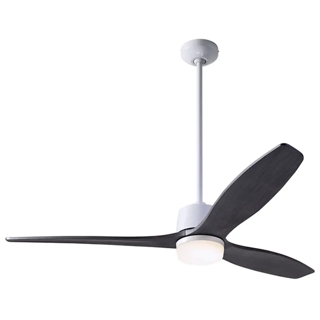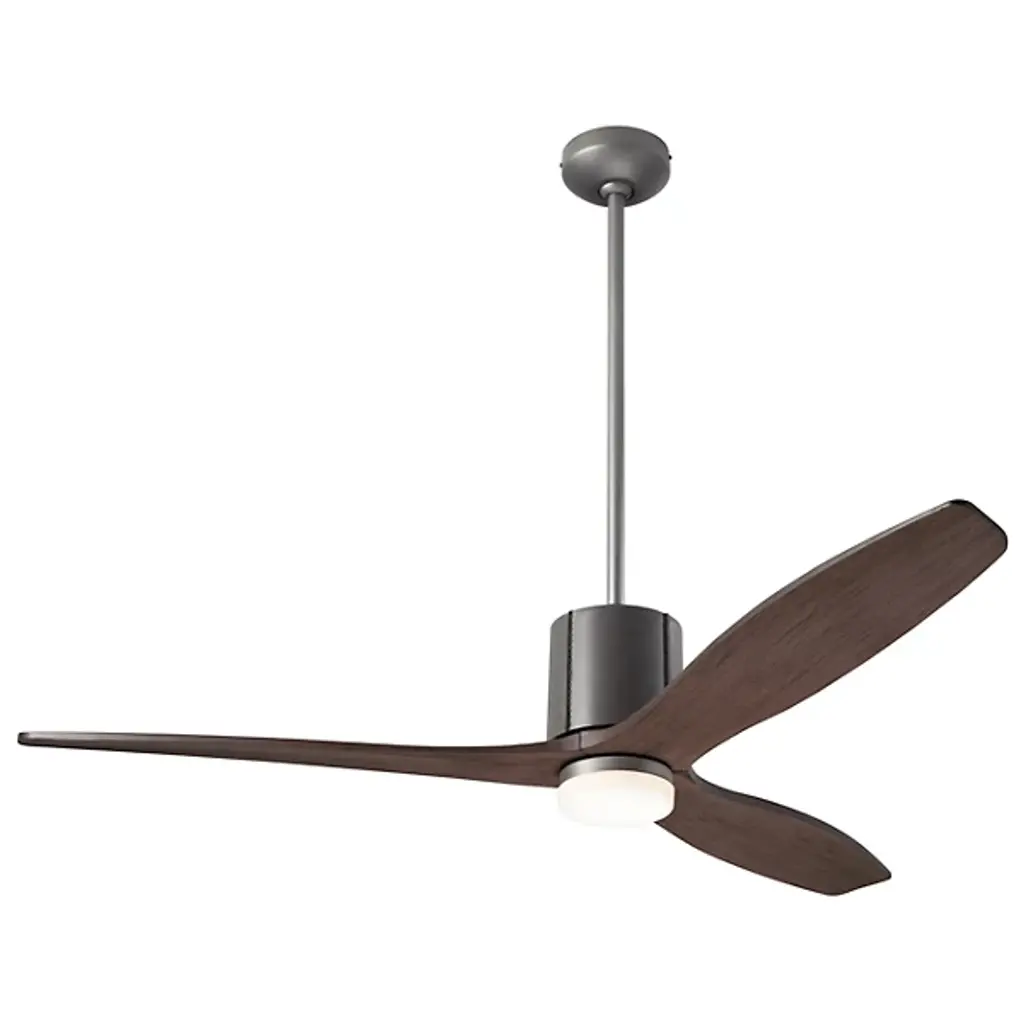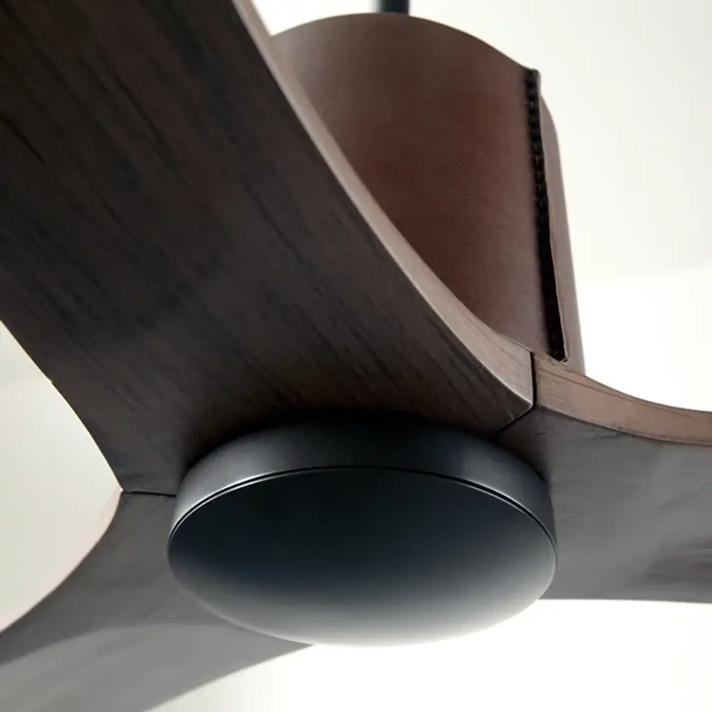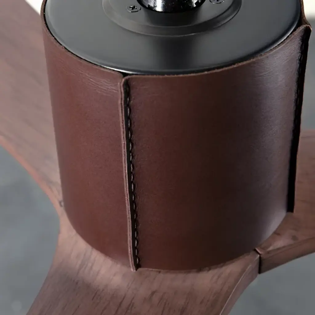 Designed by Dave Ellis of The Modern Fan Company, the LeatherLuxe Ceiling Fan helps tie the ambiance and aesthetic of your rooms with its swift breeze and elegantly accenting leather. This piece showcases the personality of Ellis’ work, where every stitch and subtle contour is crafted with great visual impact in mind. Suspended with an included 3” or 14” downrod, its dark bronze construction provides a graphic silhouette with its deep hue. Wrapping leather defines the form of its cylindrical housing with a soft, lustrous surface and neat stitching. A trio of CNC milled Paulownia wood blades extend out with gestural contours underlining their aerodynamics. A DC motor sends the blades moving across six separate speeds, leaving behind the enduring figure of its elegant leather. Adjust its comfortable breeze with your choice of remote, which adds reversible and light switch toggling.