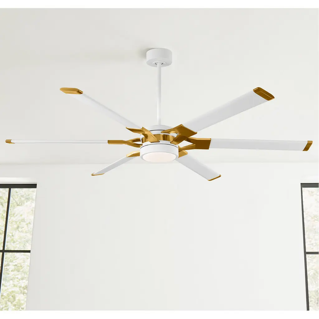 Loft 62 Inch Matte White Ceiling Fan In Matte White And Burnished Brass