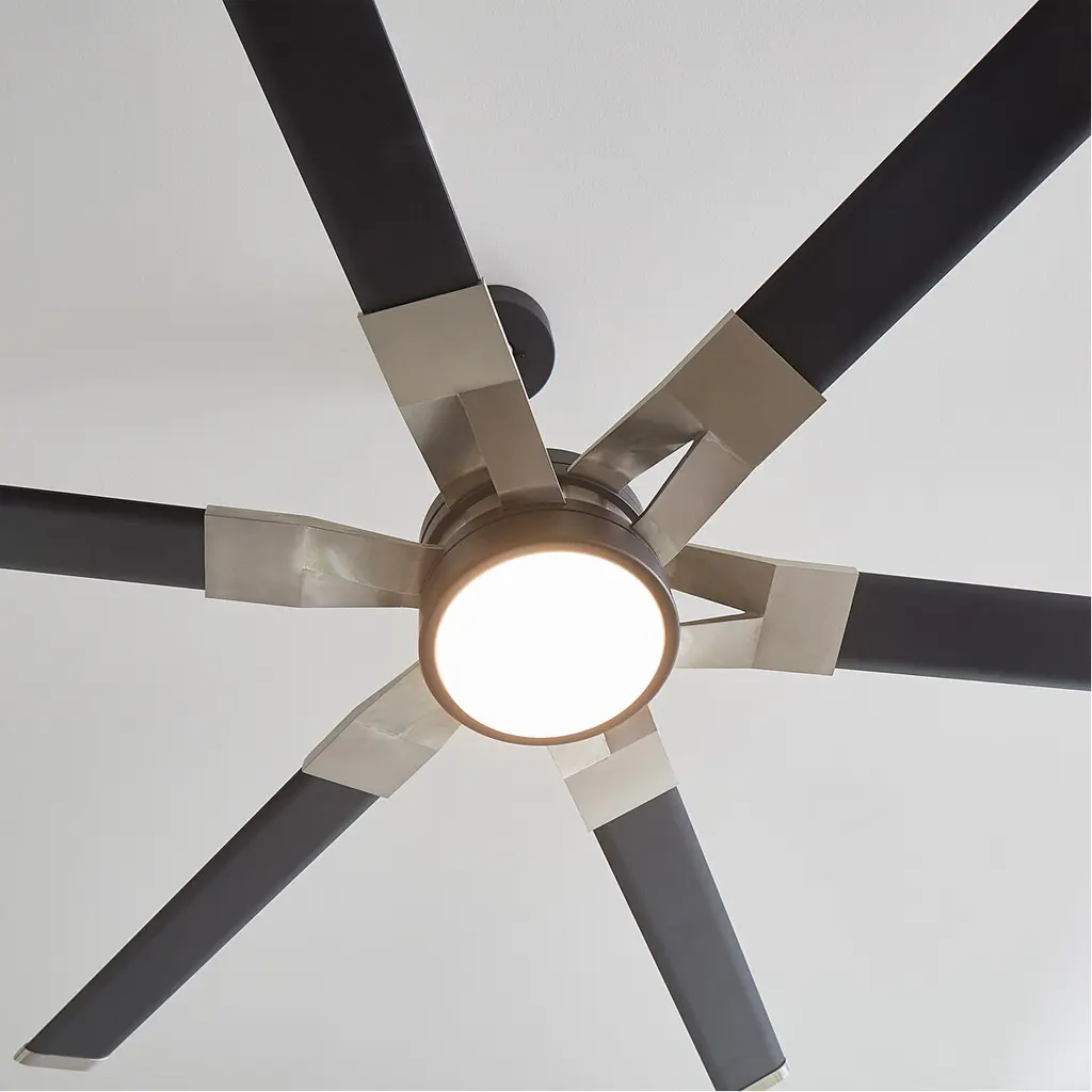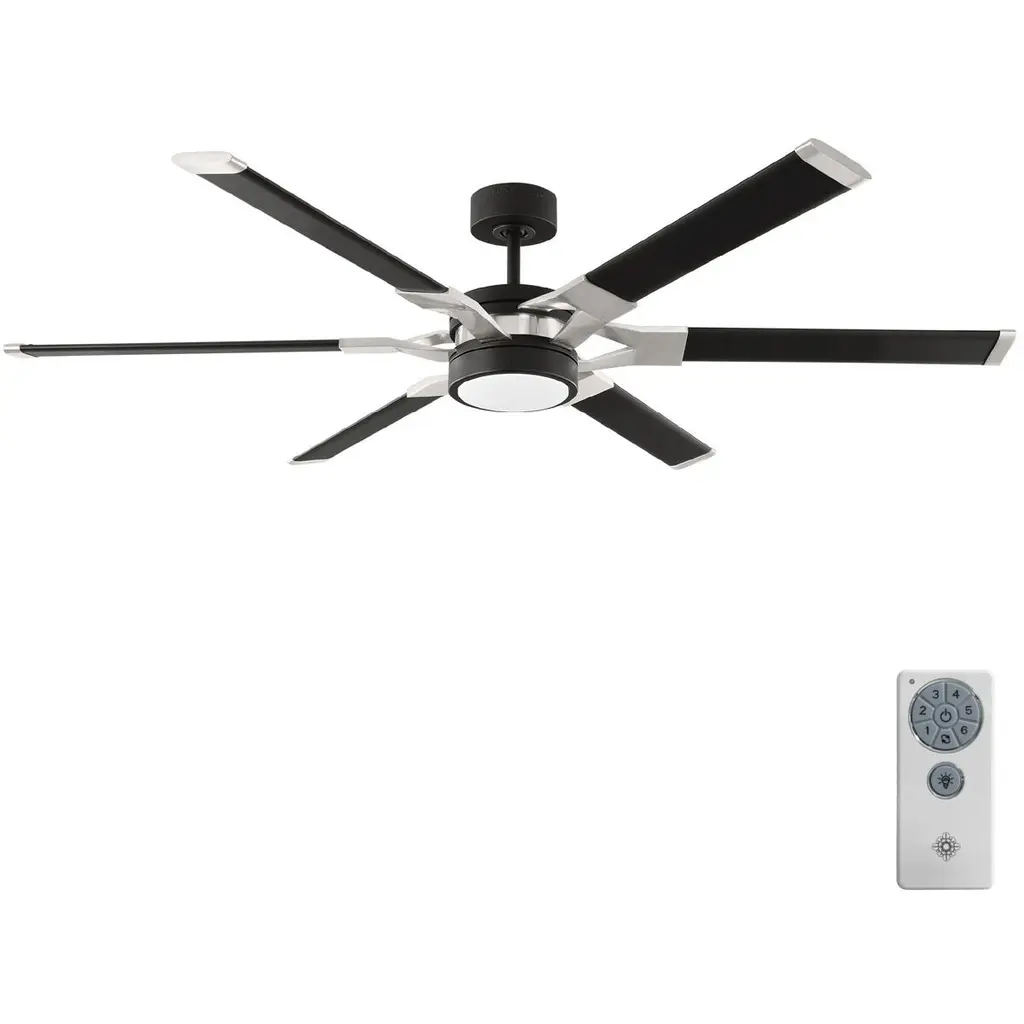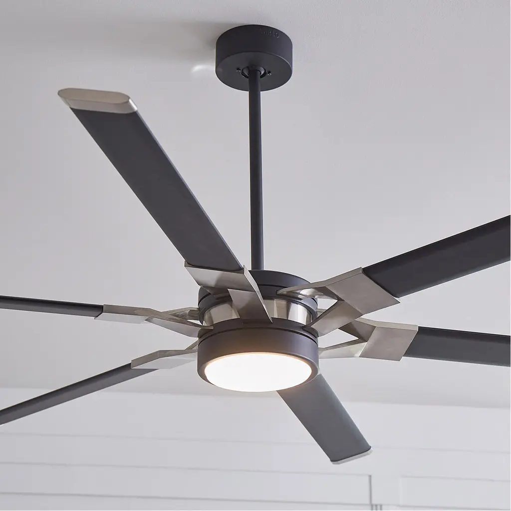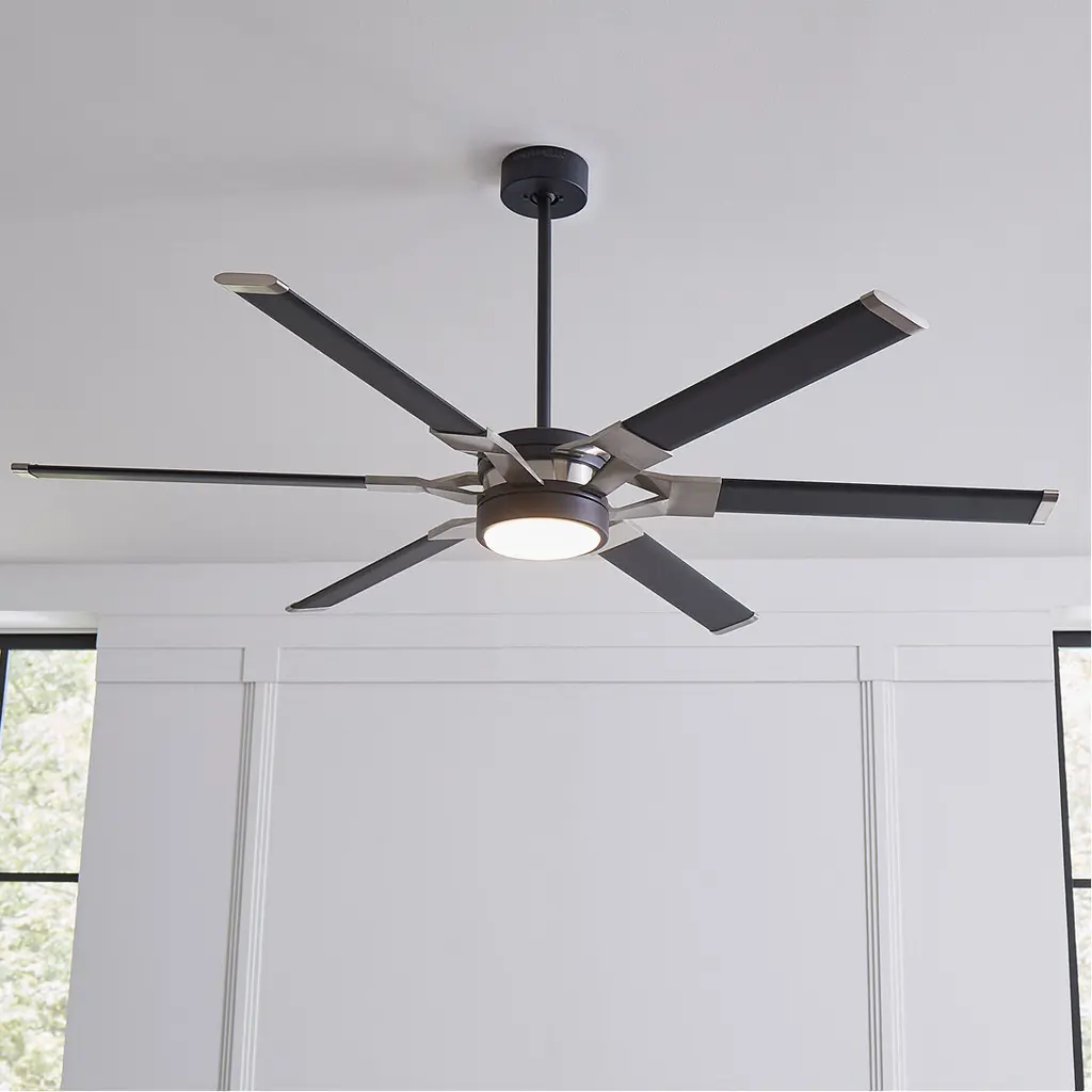 The Sean Lavin Loft 62 in Midnight Black features a 125.0 X 25.0 6 speed motor with a Thirteen degree blade pitch. With a unique split blade iron design, two-tone finish combinations and extruded aluminum blades, Loft is ideal for modern homes and commercial environments. The large-scale 96÷ fan has a powerful DC motor that uses minimal electricity, and a bright white energy-saving LED downlight. Circulate air and create a strong base of ambient light in your projects with Loft by Sean Lavin.