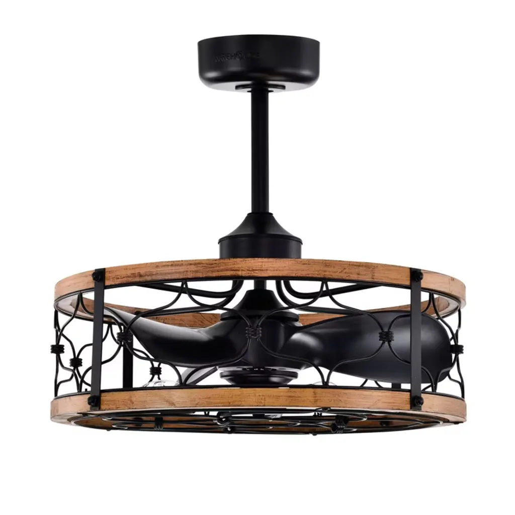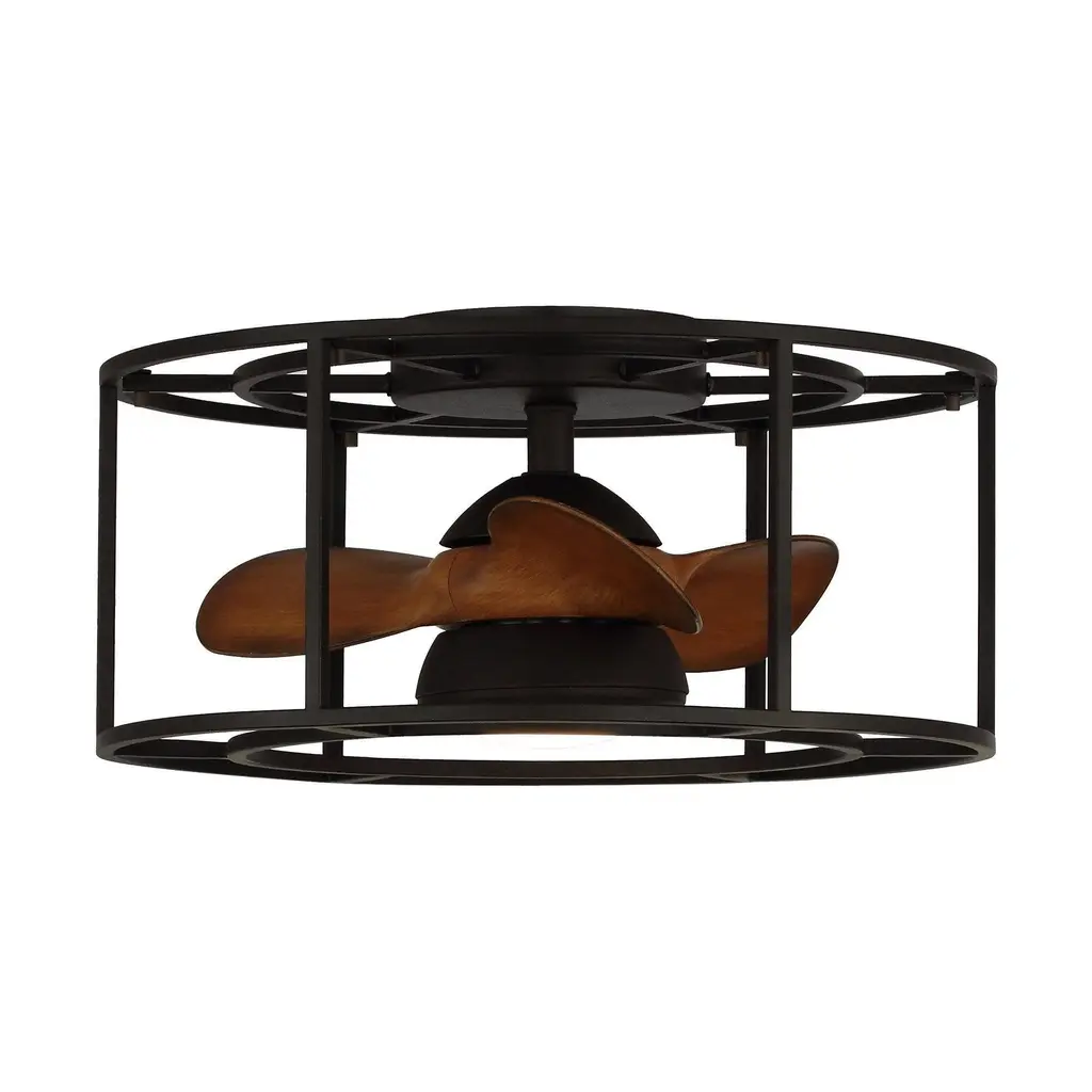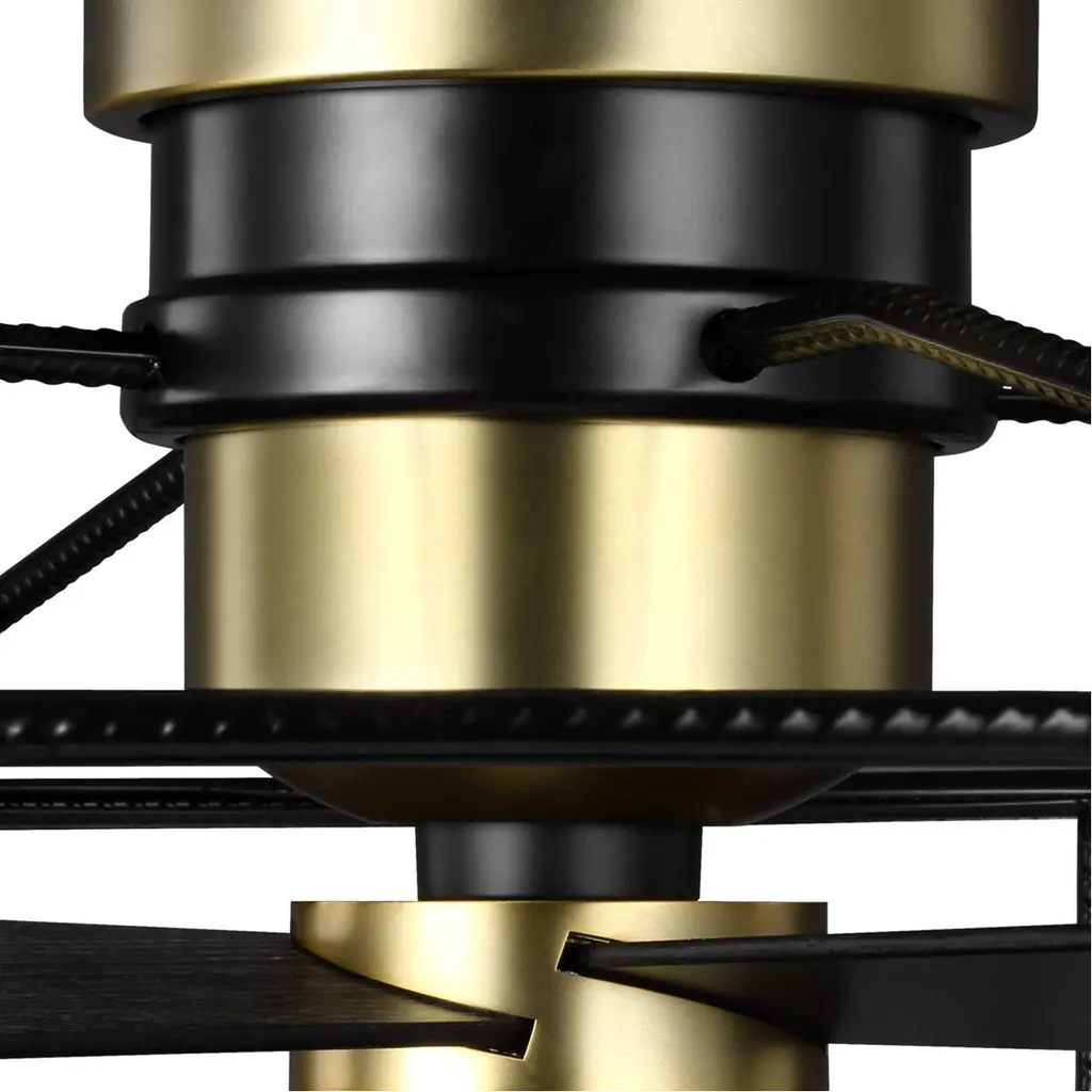 Outfitted with stylish mixed metal elements, this ceiling fan shows off an industrial-inspired, open-cage design. Four plywood blades rotate within the cage and anchor to a vintage-style base. The fan's stunning aesthetic and its handy remote control are ready to help you and your family stay comfortable and relaxed all year round.