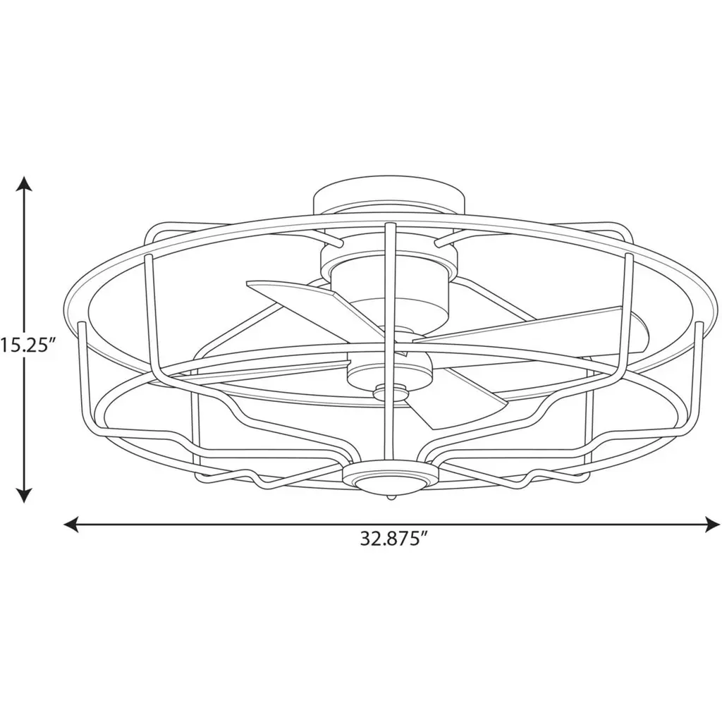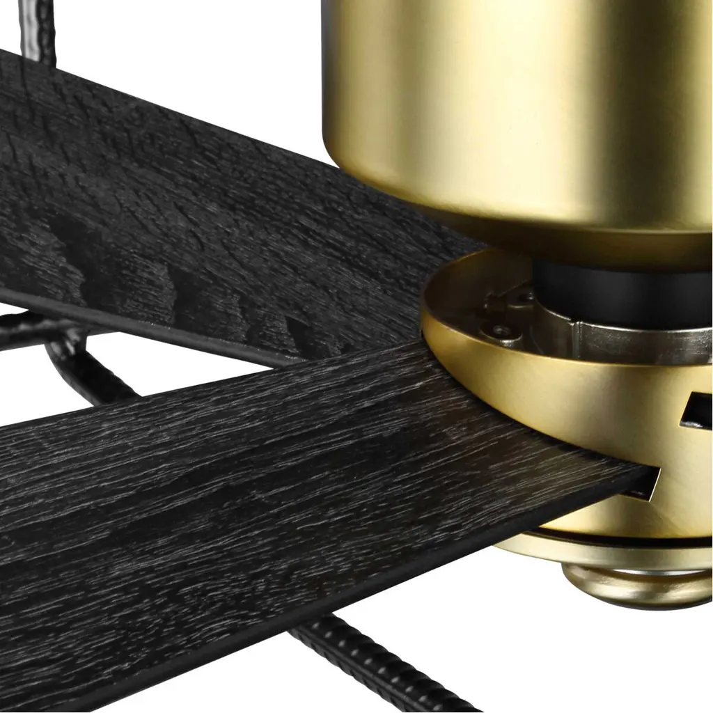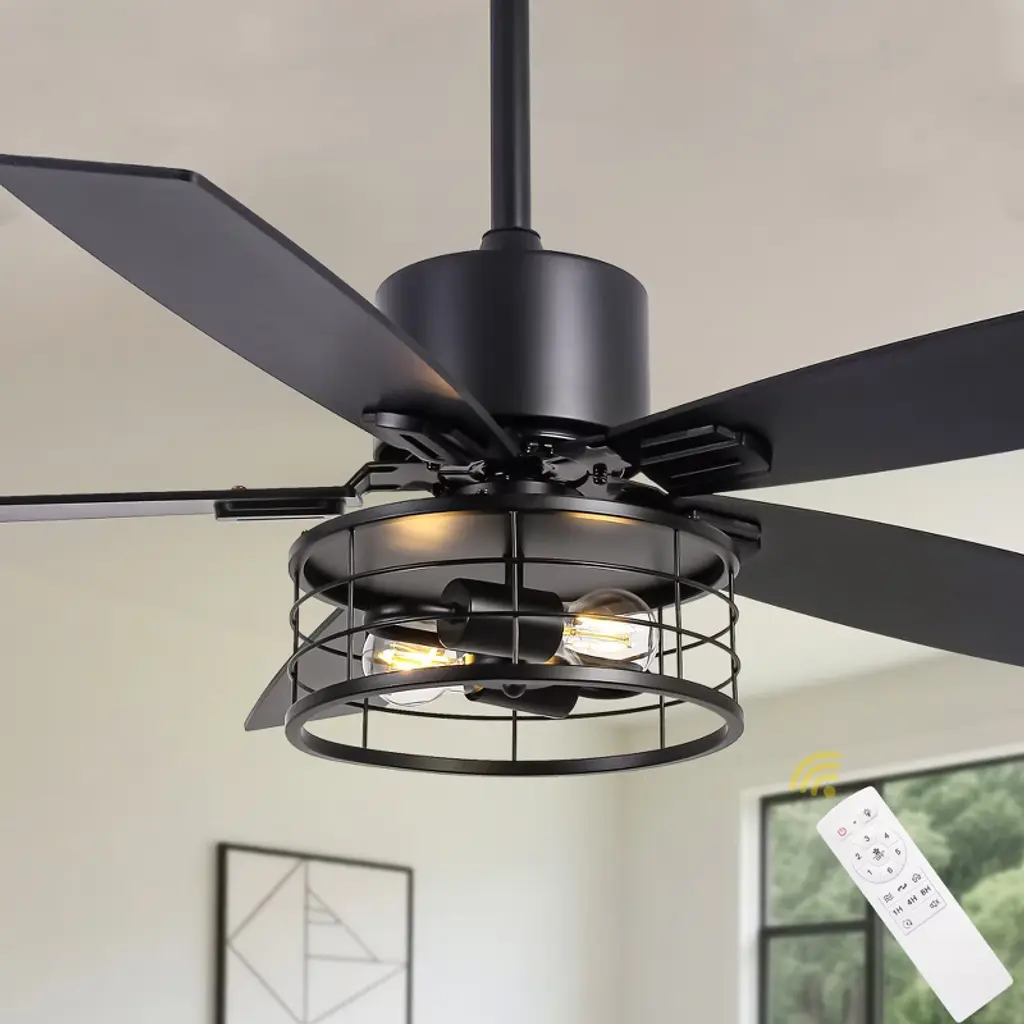 Outfitted with stylish mixed metal elements, this ceiling fan shows off an industrial-inspired, open-cage design. Four plywood blades rotate within the cage and anchor to a vintage-style base. The fan's stunning aesthetic and its handy remote control are ready to help you and your family stay comfortable and relaxed all year round.