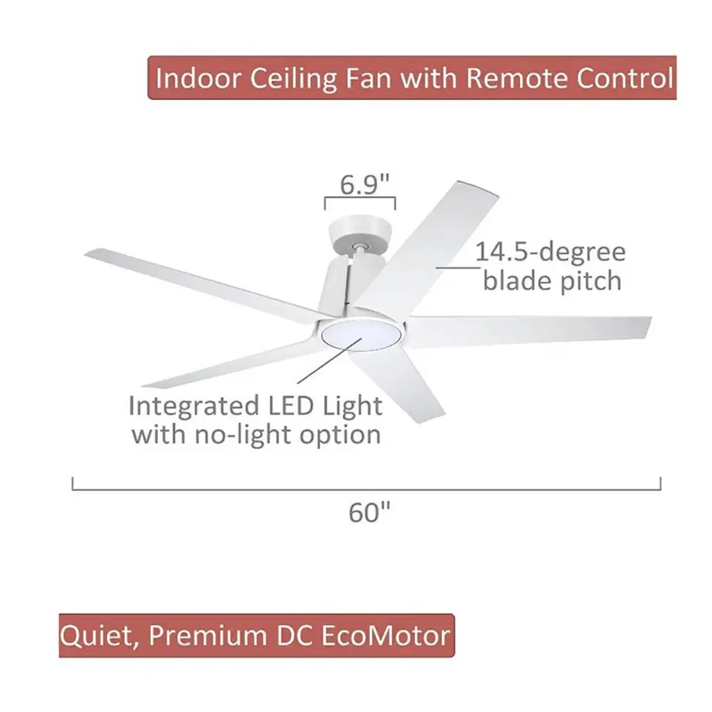 Luminance Floret Eco 60" Satin White Led Damp Rated Ceiling Fan With Light Kit Remote 5-blade