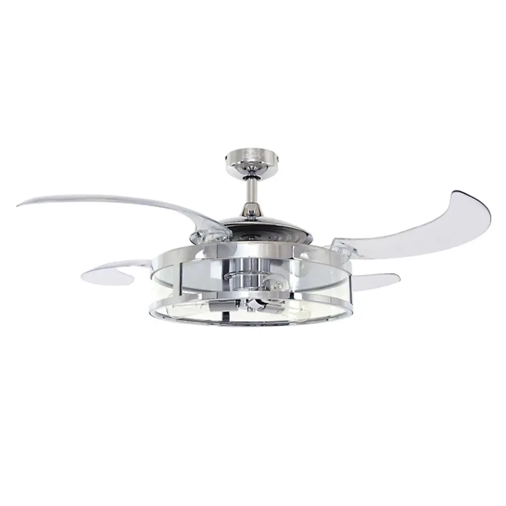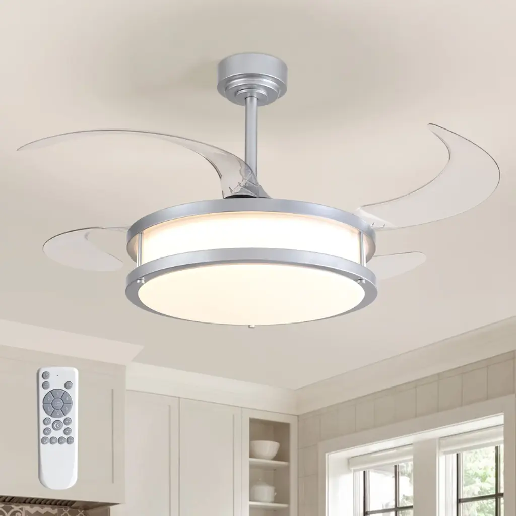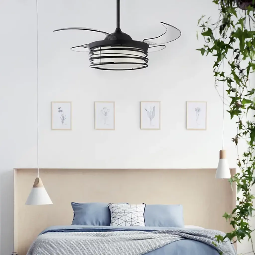 The Luna LED Ceiling Fan from Beacon Lighting combines sleek design with smart functionality. When off, its blades fold in, revealing a striking industrial-style pendant with a spiral cage and soft white linen shade. This space-saving fan includes a dimmable LED panel with 945 lumens, three light color options, and a 3-speed remote control with a wall mount. With its energy-efficient design and modern charm, this fan adds style, comfort, and flexibility to any room in your home.