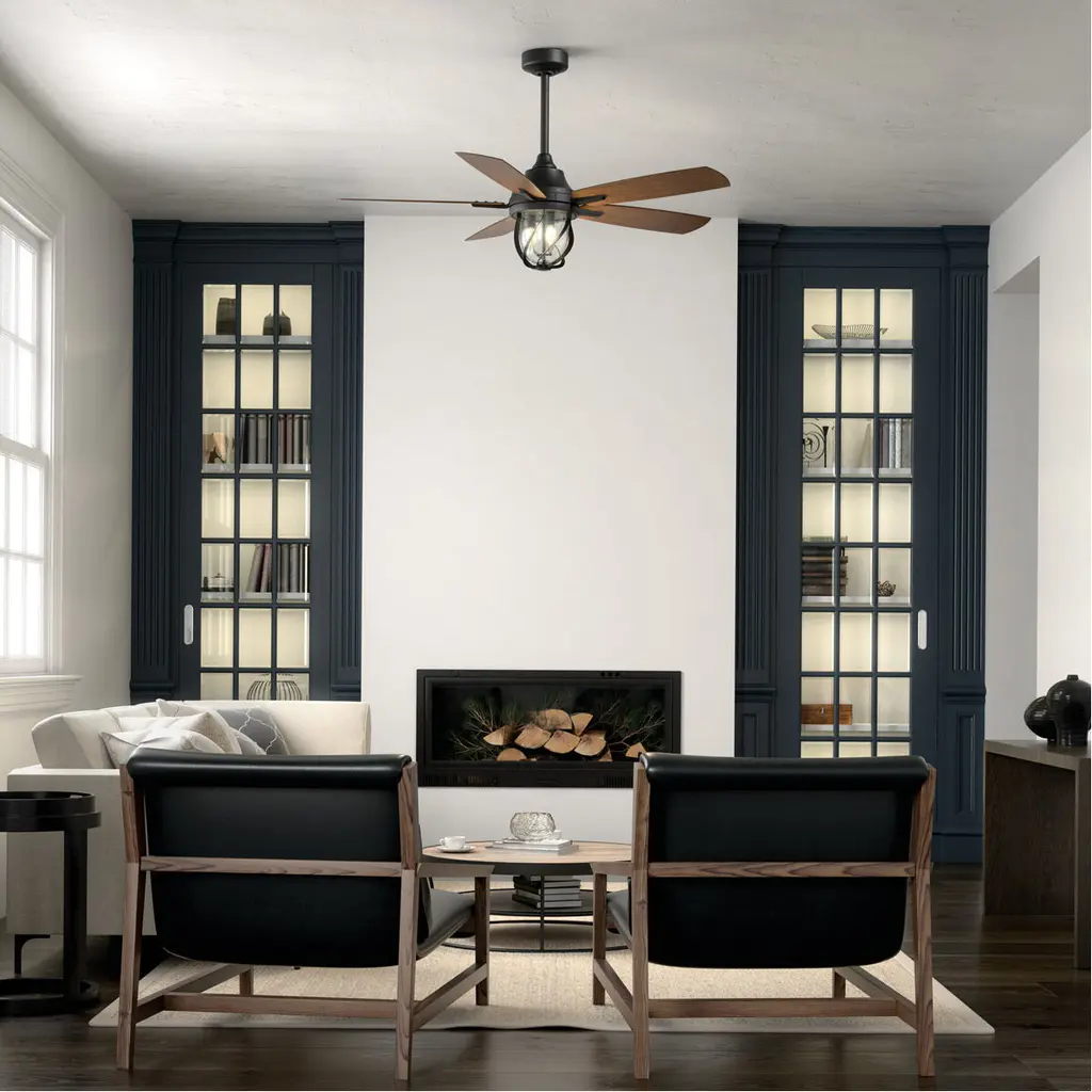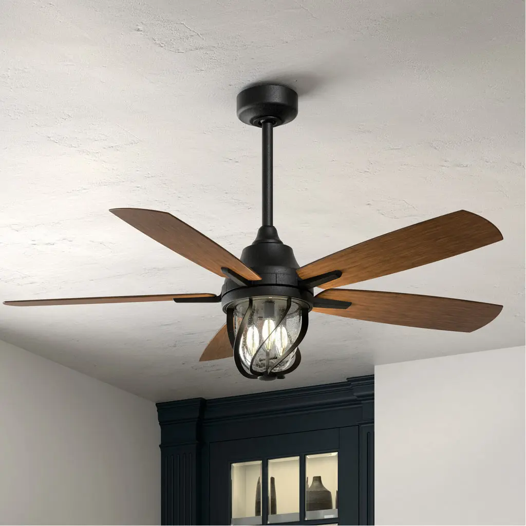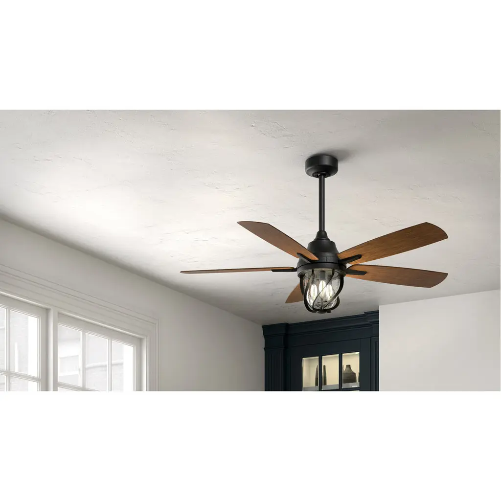 Lydra 52 Inch Distressed Black With Walnut Blades Ceiling Fan