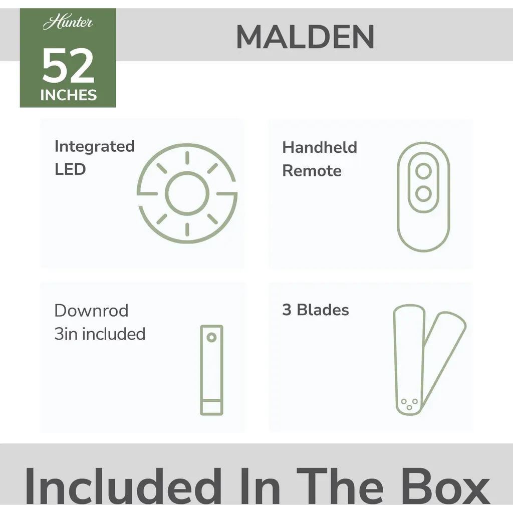 Maximize your indoor spaces with the Malden Ceiling Fan, where casual style meets exceptional performance. Designed with our SureSpeed Guarantee, it delivers powerful airflow you can feel while staying whisper-quiet and wobble-free. The WhisperWind reversible motor ensures year-round comfort, cooling in summer and warming in winter. Perfect for larger rooms like living rooms or bedrooms, its casual design blends effortlessly with relaxed, modern aesthetics. A remote control makes it easy to adjust fan speed, dim the light, and reverse the motor seasonally. Featuring adjustable LED lighting, the Malden Ceiling Fan lets you customize the ambiance of your room, ensuring the perfect setting for any occasion. The Malden Ceiling Fan brings comfort, convenience, and laid-back style to your home.